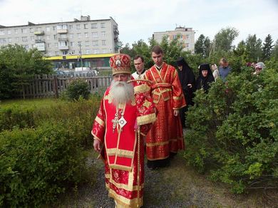 После Божественной литургии был отслужен молебен с крестным ходом вокруг храма.