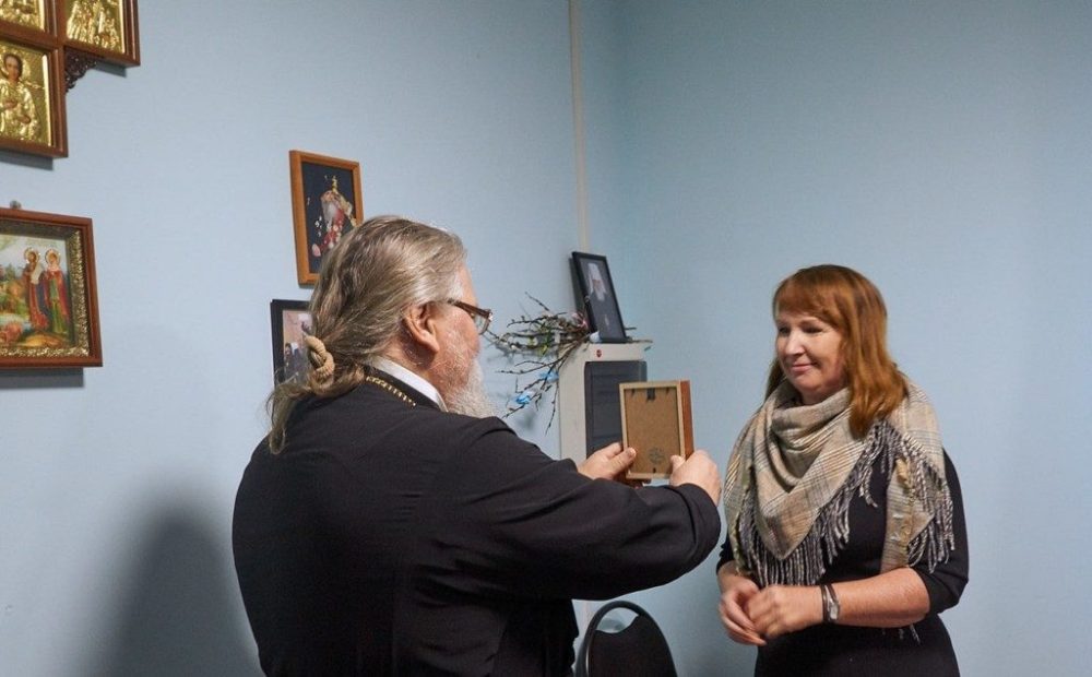 Настоятель храма Спаса Нерукотворенного протоиерейБорис Пуговкин горячо поздравил наших гостей, подарил им на память иконы и выразил пожелание продолжать плодотворное сотрудничество в духовном объединении людей.