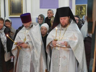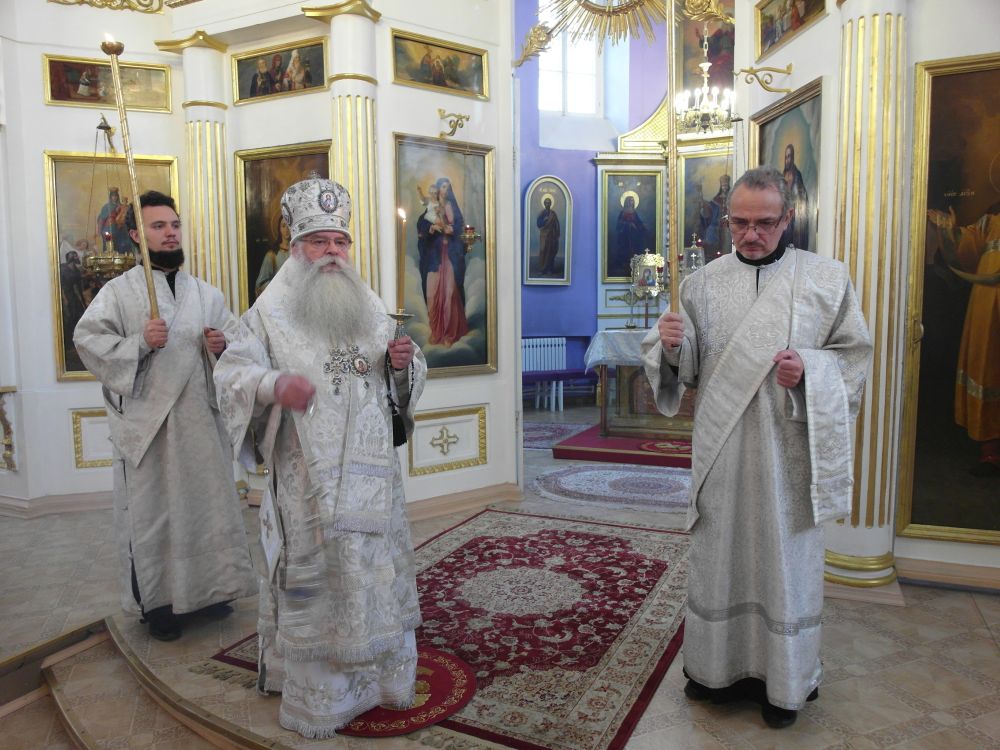 Его Высокопреосвященству сослужили секретарь Петрозаводского епархиального управления священник Константин Павлюченко, клирики храма и протодиакон Владимир Морозов.