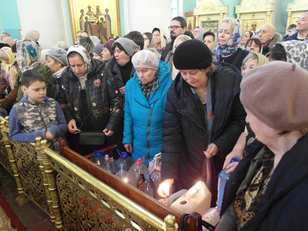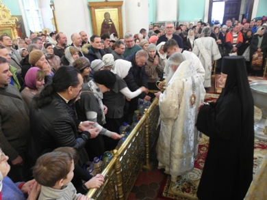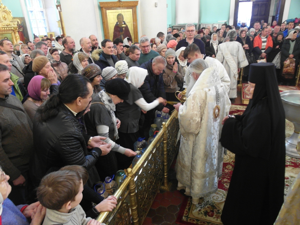 Петрозаводск. 19 января 2020 года, в праздник Богоявления, митрополит Петрозаводский и Карельский Константин совершил в Божественную литургию Александро-Невском кафедральном соборе города Петрозаводска. Его Высокопреосвященству сослужили штатные клирики собора. По запричастном стихе проповедь произнес иерей Евгений Барышев. По заамвонной молитве митрополит Константин совершил чин великого освящения воды. По окончанию богослужения правящий Архиерей поздравил прихожан и духовенство собора с праздником Святого Богоявления. В своей проповеди митрополит Константин еще раз обратился к евангельскому рассказу о событии Крещения и объяснил, почему праздник называют Богоявлением. Великое водосвятие совершается только дважды в году: в Крещенский сочельник и в самый день праздника Богоявления – после литургии. Вода, освященная в эти дни, называется великой агиасмой (греч. «святыня»). Освящается она или в специальных наполненных емкостях, или же в реке, озере, колодце, куда совершается торжественный крестный ход, называемый ходом на Иордань. Информационный отдел Петрозаводской и Карельской епархии, 2020год