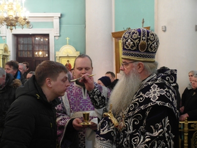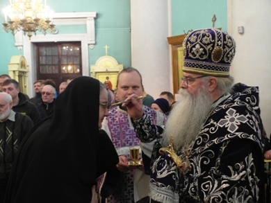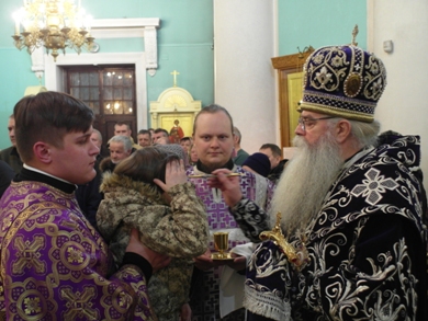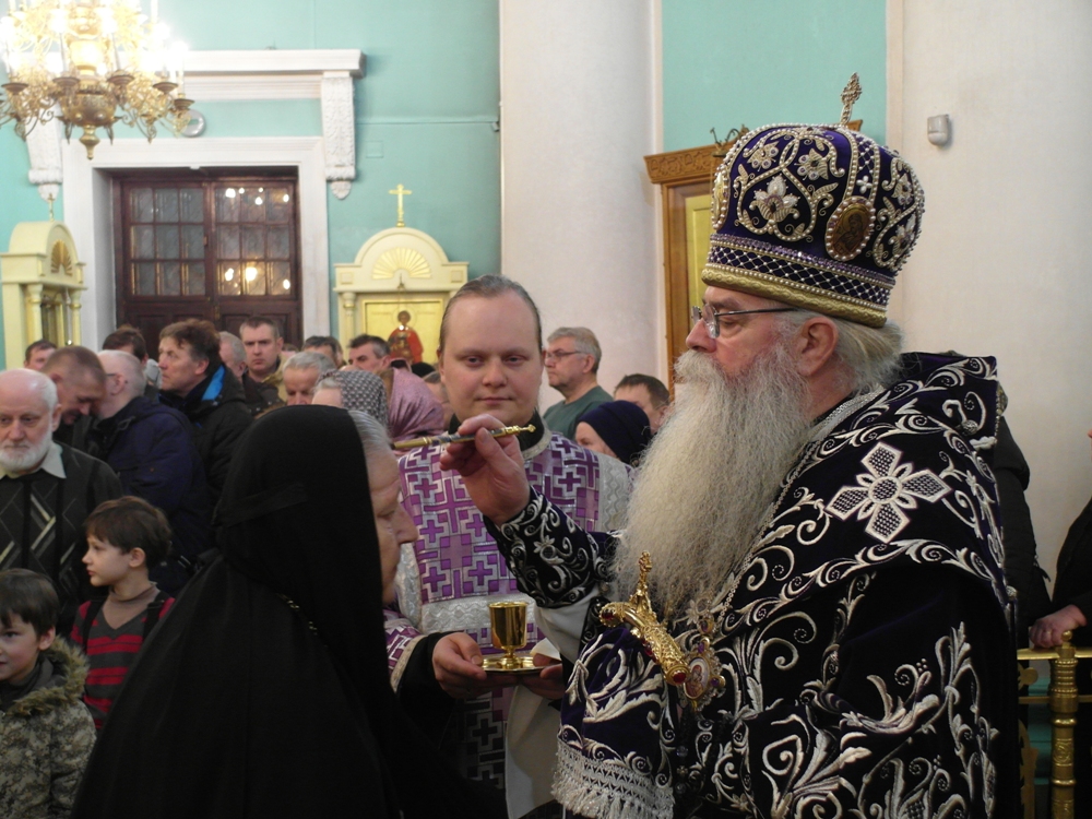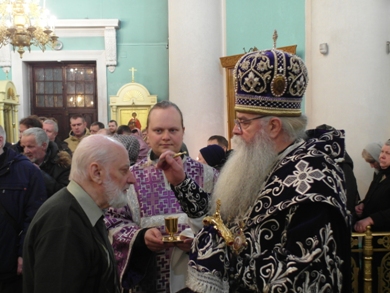 Петрозаводск. Вечером 7 марта, в канун Недели 1-й Великого поста, Торжества Православия, митрополит Петрозаводский и Карельский Константин совершил всенощное бдение в Александро-Невском соборе г. Петрозаводска. Перед началом богослужения Владыка преподнес в дар собору напрестольное Евангелие. Его Высокопреосвященству сослужили штатное духовенство храма. Владыка совершил помазание верующих елеем. Служба совершалась накануне Недели Торжества Православия, и именно этому празднику, который установлен Церковью в конце первой седмицы Великого поста, владыка посвятил свое наставление по окончании богослужения. Завтра в 9.30 митрополит Константин совершит Божественную литургию и молебное пение празднику Торжества Православия в кафедральном соборе. «Торжество́ правосла́вия» (греч. ο θρίαμβος της Ορθοδοξίας) — праздник в Православных церквях, совершаемый в первую неделю (воскресенье) Великого поста. Установление праздника связано с событиями Константинопольского собора 843 года, созванного императрицей Феодорой для восстановления иконопочитания в Византийской империи. Информационный отдел Петрозаводской и Карельской епархии, 2020 год