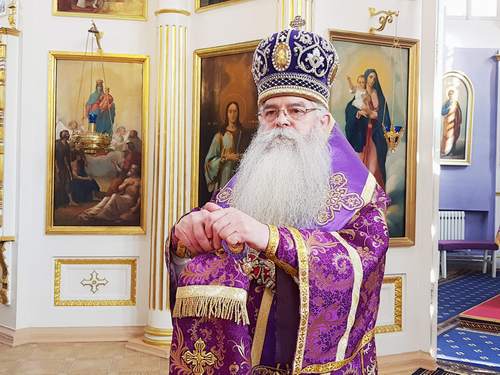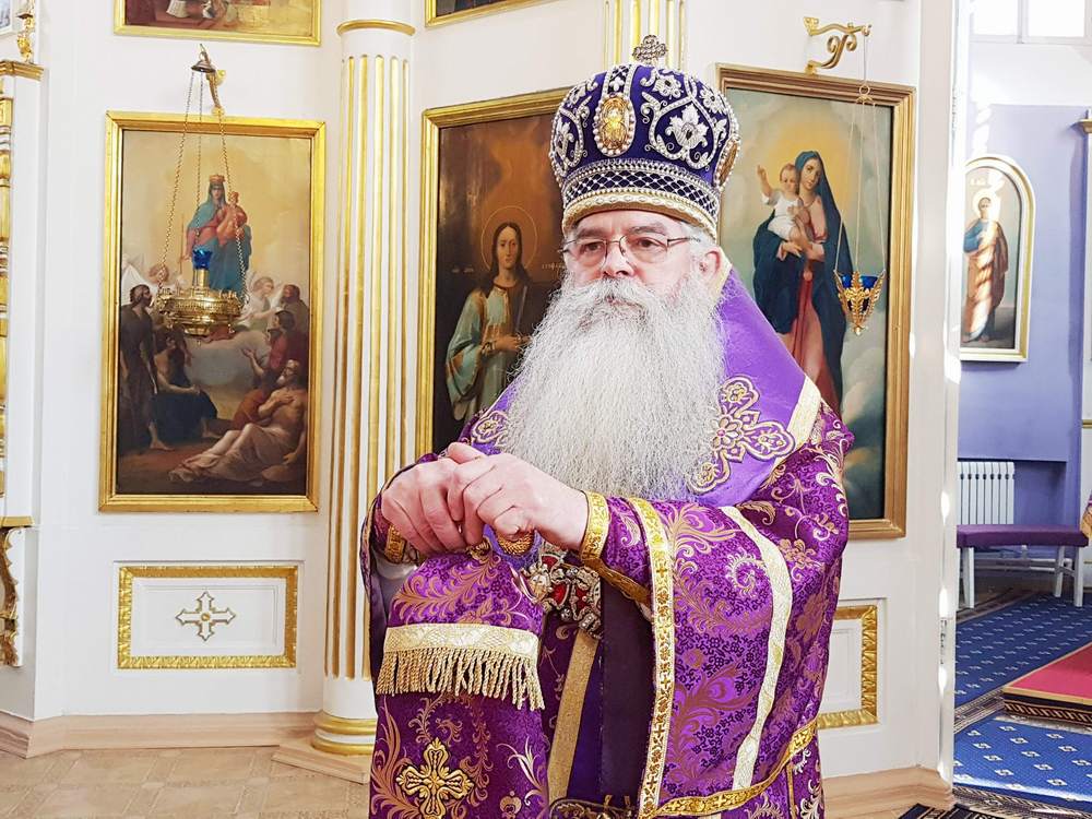 В Неделю Крестопоклонную митрополит Константин совершил Литургию в Крестовоздвиженском соборе, 22 марта 2020 года