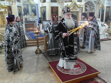 15.04.20 В среду Страстной седмицы митрополит Константин совершил Литургию Преждеосвященных Даров в Крестовоздвиженском соборе.