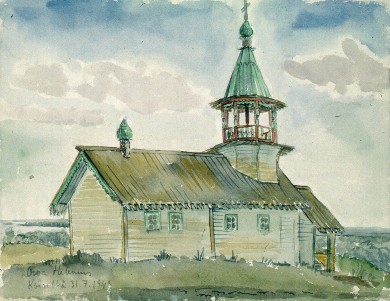 На иконе в два ряда изображены святые в предстоянии перед образом Спасителя. Поясняющая надпись на нижнем поле иконы раскрывает обстоятельства ее создания: «Сей образ написан 1889 года в селение Косельга, написан сей образ всех святых во имя каждаго дома хозяина и на всех прочих усердников в память нашим де(да)м и предкам, чтобы и они были усердны так, как ихние родители старались для часовни в (у)году Господу Богу» (реконструированные фрагменты надписи заключены в скобки). Как следует из надписи, икона происходит из часовни в деревне Косельга. Эта деревня, расположенная на Большом Клименецком острове, была впервые упомянута в переписнй книге 1678 г. Она входила в состав Сенногубской волости, а часовня находилась в ведении Кижского прихода. В центре верхнего ряда иконы изображен прямолично святитель Василий Великий. По правую руку от него, считая от края иконы, изображены в трехчетвертном развороте к центру Василий Блаженный, мученик(?) Василий, преподобный Иоанн Лествичник, апостол Андрей, справа – апостол Тимофей, преподобный Григорий, мученики Козьма, Георгий. В центре нижнего ряда прямолично представлен Иоанн Предтеча — Ангел пустыни, слева – святитель Василий (Капельник), мученик Георгий, Иона митрополит московский, царь Константин, справа – апостол Матфей, преподобный Макарий Желтоводский (Унженский) священномученик Ефим (Евфимий), преподобный Григорий. Всего на иконе 18 фигур святых. Великомученик Георгий изображен дважды. Последнее говорит о том, что каждый домохозяин представлен своим небесным покровителем. Приступая к анализу содержания этого произведения, прежде всего следует вникнуть в смысл надписи. Она отличается от обычных вкладных, летописных и иных надписей на иконах своей назидательностью и даже какой–то «агитационной» заостренностью. Изображая святых покровителей крестьян, автор данного произведения призывает последних помнить о своей обязанности заботиться о часовне, как это делали их деды и более далекие предки. Написание иконы могло быть связано с проведенем каких–то работ в часовне и должно было служить стимулом к вложению средств или выражением благодарности за участие в общем деле. Таким образом, надпись сединяет в себе летописное сообщение (указана дата создания иконы) и пояснение об участии неких лиц в планируемом или уже совершенном деле, о котором прямо не говорится. О каких же работах в часовне могла идти речь? Часовня преподобного Макария Желтоводского (Унженского) деревни Косельга впервые упоминается в документах Кижского прихода под 1856 г. По данным Л.Петтерссона, часовня пережила несколько конструктивных периодов. Третий из них приходился на 1880–1885 гг. Возможно, с этими работами в часовне (которые в таком случае следует отнести к несколько более позднему времени) и связано написание публикуемой иконы. В данной работе мы не ставим своей целью выяснение биографических сведений о крестьянах (что уместнее сделать в рамках иной темы исследования, с привлечением метрических книг по Сенногубской волости за большой отрезок времени). Из выявленных нами архивных материалов по деревне Косельга ближайшими к 1889 г. являются документы, созданные за 29 лет до и спустя 22 года после даты написания иконы. Это посемейные списки с указанием имен и возраста домохозяев и их сыновей на 1860 г. и списки домохоз