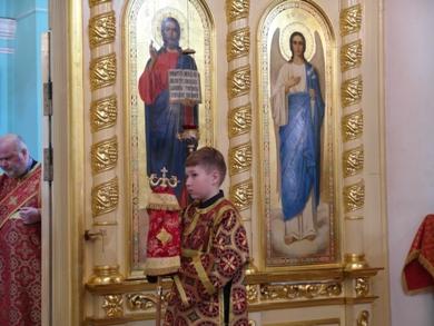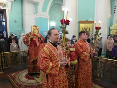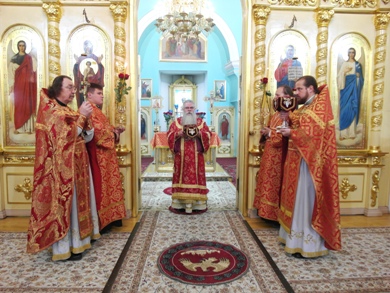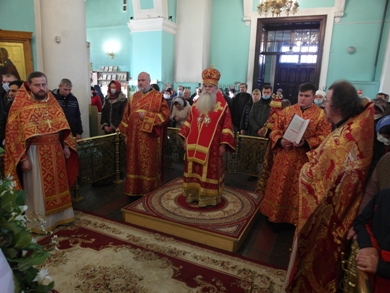 Его Высокопреосвященству сослужили клирики собора.