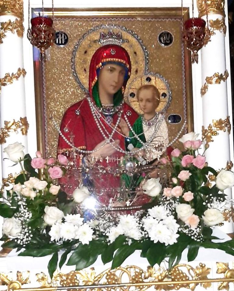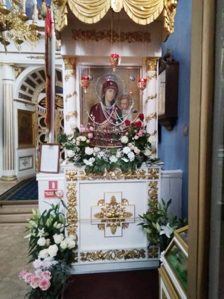 В советское время икона была разорена, драгоценную ризу сняли. Только в 90-е годы прошлого столетия святой образ вернулся в Крестовоздвиженский собор. Икону покрыли новой, шитой бисером, ризой и поместили в красивый резной киот.