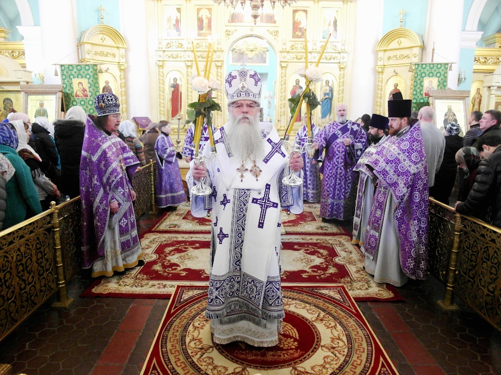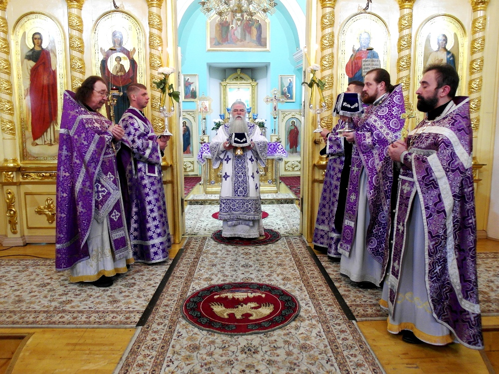 ПЕТРОЗАВОДСК. 21 марта 2021 года, в Неделю первую Великого поста, Торжества Православия, прпп. Лазаря и Афанасия Муромских-Олонецких, Глава Карельской митрополии, Председатель Синодальной богослужебной комиссии, митрополит Петрозаводский и Карельский Константин совершил Божественную Литургию святителя Василия Великого и молебное пение в день Торжества Православия в кафедральном соборном храме во имя святого благоверного великого князя Александра Невского в Петрозаводске. Накануне вечером, митрополит Константин совершил всенощное бдение в Крестовоздвижеснком соборе г. Петрозаводска. За Литургией Его Высокопреосвященству сослужили клирики собора. Владыка Константин вознес у Престола Божия молитву об избавлении от морового поветрия. Также была вознесена сугубая молитва о медицинских работниках, исполняющих свой долг в это тяжелое время. За богослужением пел хор храма. В конце литургии Владыка Константин обратился к верующим с архипастырским словом. После чего митрополит Константин совершил чин Торжества Православия. Этот чин в основе своей является благодарственным молебном с особыми прошениями, чтениями из Священного Писания и молитвой о единстве в Церкви, к которому добавляется чтение Символа веры, многолетия предстоятелям поместных православных церквей и некоторые другие молитвословия. По уставу Церкви, литургия свт. Василия Великого служится по воскресеньям Великого поста. На ней происходит освящение Даров, которыми верующие причащаются за литургиями Преждеосвященных Даров в течение последующей седмицы. Информационный отдел Петрозаводской и Карельской епархии, 2021 год