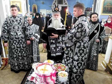 Петрозаводск. 19 марта 2021 года, в пятницу первой седмицы Великого поста, митрополит Петрозаводский и Карельский Константин совершил Литургию Преждеосвященных Даров в Крестовоздвиженском соборе. Его Высокопреосвященству сослужили: секретарь Петрозаводского епархиального управления иерей Константин Павлюченко, штатные клирики Крестовоздвиженского собора и протодиакон Владимир Морозов. Богослужебные песнопения исполнил хор собора. Проповедь по запричастном стихе произнес клирик собора иеромонах Аркадий (Лозовский). После вечерни и Литургии Преждеосвященных Даров Владыка совершил молебный канон святому великомученику Феодору Тирону и благословил коливо – рис, сваренный с медом. По окончании богослужения митрополит Константин поздравил присутствующих с окончание первой седмицы Великого Поста. Также владыка поздравил с 35-летием клирика собора иеромонаха Аркадия (Лозовского). Празднование святому великомученику Феодору Тирону установлено по следующему случаю. В 362 году греческий император Юлиан Отступник в насмешку над христианами приказал тайно окропить идоложертвенной кровью все съестные припасы, продававшиеся на рынках Антиохии. Отступник от христианской веры хотел таким образом осквернить верующих, которые строго постились в первую неделю Великого Поста. Но великомученик Феодор, сожженный в 306 году за исповедание веры Христовой, явился во сне епископу Евдоксию, рассказал об этом распоряжении Юлиана и дал совет вместо оскверненной пищи употреблять в течение недели коливо – зерна пшеницы, размоченные в воде с добавлением меда. В наши дни коливо - особое блюдо из зерен злаков, сваренных с медом – чаще делают из риса. Информационный отдел Петрозаводской и Карельской епархии, 2021 год