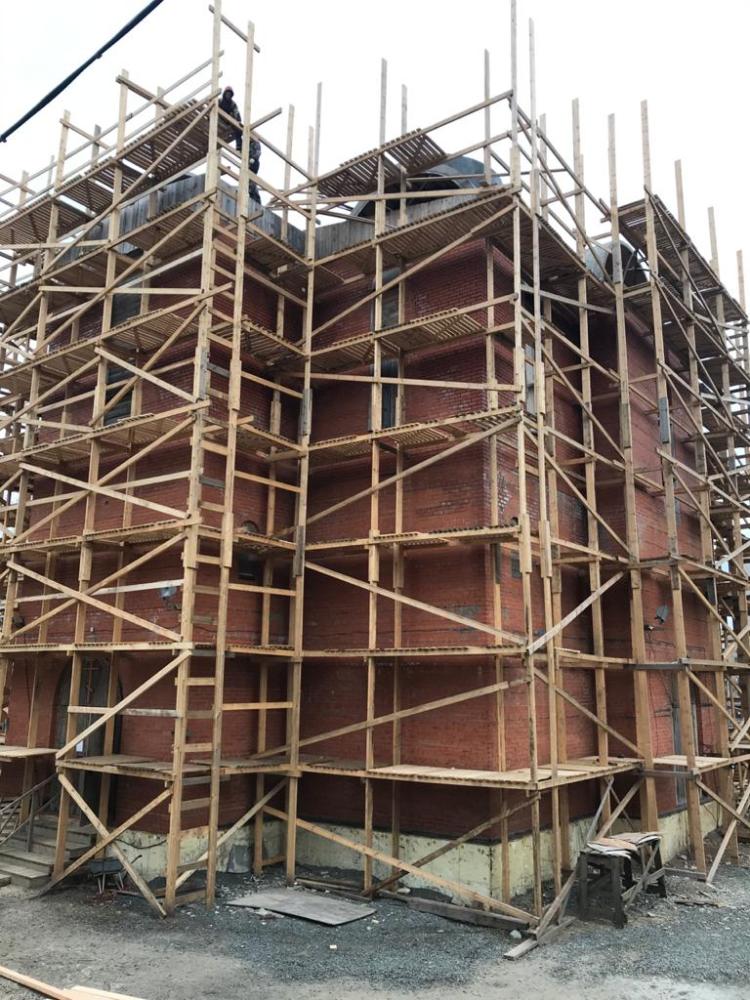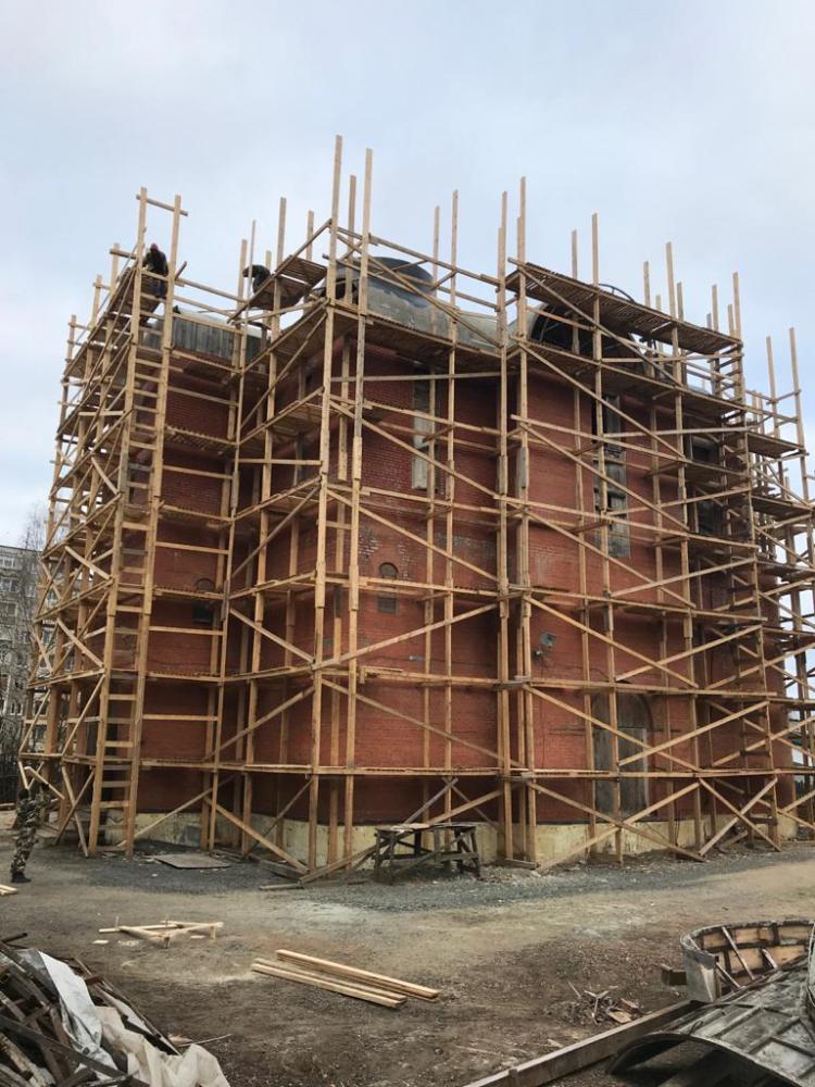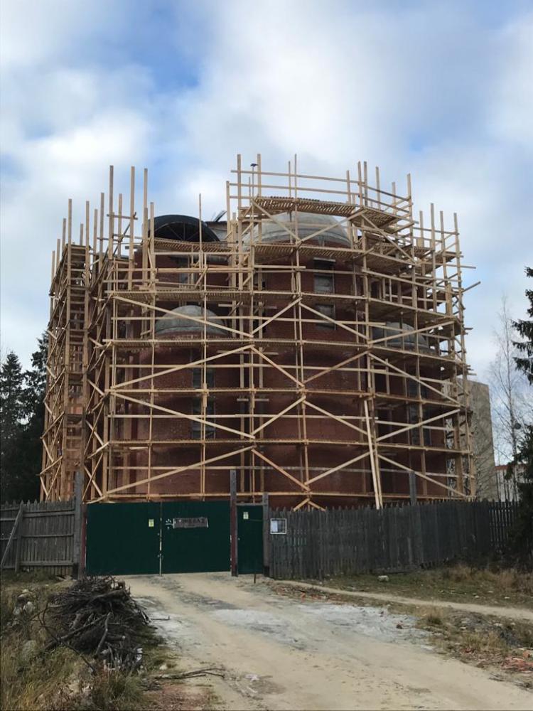 В Петрозаводске, в центре микрорайона Кукковка, рядом с живописным парком «Беличий остров», с сентября 2012 года идет строительство нового православного храма в честь Казанской иконы Божией Матери. Нельзя не отметить хорошие темпы работы со столь сложным архитектурным объектом. И какой кропотливой работы! На данное время уже построен цокольный этаж, где будет располагаться крестильный храм с баптистерием в форме креста и трапезная. Возведены стены храма. В этом году завершаются сложные работы по строительству тонкостенных бетонных арочных и сферических сводов кровли. Выполнена последняя часть заливки бетонных сводов. Разбирается сложная конструкция металлического опорного каркаса опалубки. На очереди работы по гидроизоляции бетонных сводов кровли и окантовки ее торцевыми полукругами кирпичной кладки. Для этой цели возведены по всему периметру храма многоярусные строительные деревянные леса, которые потребуются в дальнейшем для штукатурных, декоративных и отделочных работ. 5 августа 2019 года митрополит Петрозаводский и Карельский Константин совершил молебен ко Пресвятой Богородице пред иконой Ея Казанской в стенах строящегося в микрорайоне Кукковка храма во имя Казанской иконы Божией Матери. Молебен стал третьим Архиерейским богослужением в стенах строящегося храма. Его Высокопреосвященству сослужили настоятель прихода, секретарь Петрозаводского епархиального управления, протоиерей Роман Чадаев, ключарь храма пророка Илии г. Петрозаводска иеромонах Аркадий (Лозовский), врио руководителя Епархиального информационного отдела иерей Евгений Кутырев и протодиакон Владимир Морозов. Богослужебные песнопения исполнил хор под управлением регента Иулии Варга. В конце молебна митрополит Константин обратился к присутствующим с архипастырским словом. Также владыка пожелал помощи Божией в строительстве. Более подробно о жизни нового храма вы можете узнать из материалов интернет - страницы Казанского храма в социальной сети «ВКонтакте»: https://vk.com/club19859929 Информационный отдел Петрозаводской и Карельской епархии по материалам прихода Казанского храма г. Петрозаводска, 2021 год.