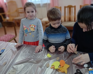 Петрозаводск. 4 апреля 2021 года, в приходском доме Екатерининского храма состоялся первый мастер - класс социального центра "Попечение" по изготовлению украшений для интерьера к Пасхе. Больше года прошло с момента последнего большого мастер - класса социального Центра «Попечение» при Екатерининском храме г. Петрозаводска для детей. И вот, наконец, волонтеры центра приняли решения возобновить работу ставших уже традиционными, мастер классов «дети для "Попечения"» Этот мастер – класс по изготовлению украшений для интерьера к Пасхе, волонтеры центра провели для детей с родителями абсолютно бесплатно, но все изделия, созданные в ходе занятий, остались в центре, для продажи. Вырученные средства поступают в "Попечение", на помощь многодетным, малообеспеченным семьям. Приобрести прекрасные поделки, созданные руками ребят можно в иконной лавке Екатерининского храма.