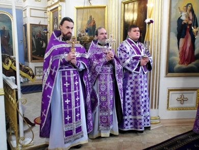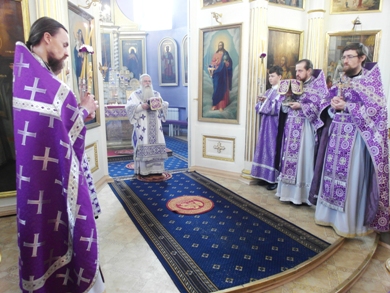 ПЕТРОЗАВОДСК. 4 апреля 2021 года, в неделю третью Великого поста, Крестопоклонную, митрополит Петрозаводский и Карельский Константин совершил Божественную литургию в Крестовоздвиженском соборе Петрозаводска. Накануне вечером, митрополит Константин совершил всенощное бдение в Крестовоздвиженском соборе. Во время великого славословия правящий архиерей совершил чин выноса Животворящего Креста Господня. Его Высокопреосвященству сослужили: секретарь Петрозаводского епархиального управления иерей Константин Павлюченко, штатные клирики Крестовоздвиженского собора и протодиакон Владимир Морозов. Песнопения Божественной литургии исполнял хор Крестовоздвиженского прихода. Владыка Константин вознес у Престола Божия молитву об избавлении от морового поветрия. Также была вознесена сугубая молитва о медицинских работниках, исполняющих свой долг в это тяжелое время. По завершении богослужения было совершено поклонение Честному и Животворящему Кресту Господню. В завершение литургии митрополит Константин обратился к пастве архипастырским словом и поздравил всех молящихся с праздником. Слово владыки полностью можно послушать на канале Петрозаводская епархия в Ютубе и на сайте епархии. В воскресенье 4 апреля Церковь празднует неделю Крестопоклонную. В этот день все верующие поклоняются кресту Господню, на котором Он претерпел Свои страсти. В Крестопоклонную неделю совершается богослужение Честному и Животворящему Кресту Господню. И начинается оно в субботу вечером: на всенощном бдении в центр храма торжественно выносится Животворящий Крест Господень – напоминание о приближающейся Страстной Седмице и Пасхе Христовой. После этого священники и прихожане храма совершают перед крестом три поклона. При поклонении Кресту Церковь поет: «Кресту Твоему покланяемся, Владыко, и святое воскресение Твое славим». Это песнопение поется и на литургии вместо Трисвятого. Святой Крест остается для поклонения в течение недели до пятницы, когда он перед литургией вносится обратно в алтарь. Поэтому третье воскресенье и четвертая седмица Великого поста называются Крестопоклонными. По Уставу положено делать четыре поклонения на Крестопоклонной неделе: в воскресенье, понедельник, среду и пятницу. В воскресенье бывает поклонение Кресту только на утрене (после выноса Креста), в понедельник и среду оно совершается на первом часе, а в пятницу «по отпусте часов». Информационный отдел Петрозаводской и Карельской епархии, 2021 год