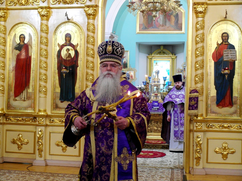 Владыка Константин вознес у Престола Божия молитву об избавлении от морового поветрия. Также была вознесена сугубая молитва о медицинских работниках, исполняющих свой долг в это тяжелое время. Проповедь по запричастном произнес клирик собора священник Константин Павлюченко. После Божественной литургии была совершена панихида по усопшим. Мученик Иоанн родился в 1880 году в деревне Алексеевка Рождественской волости Боровского уезда Калужской губернии в семье крестьянина Алексея Чернова. В день выборов в Верховный Совет, 12 декабря 1937 года, Иван Алексеевич, придя на избирательный участок, вместе с избирательным бюллетенем опустил в урну написанное им, но не подписанное письмо в защиту Православия на имя кандидата в депутаты от Наро-Фоминского района. 21 июня 1938 года сотрудник НКВД выписал справку на арест Ивана Чернова, где в вину ему ставился сбор подписей под ходатайством за открытие церкви. 28 июня Иван Алексеевич был арестован и заключен в Бутырскую тюрьму в Москве. 19 сентября Особое Совещание при НКВД СССР приговорило псаломщика к пяти годам заключения в исправительно-трудовом лагере, и он был отправлен в Беломорско-Балтийский лагерь, куда прибыл 8 ноября. Иван Алексеевич Чернов скончался от голода 10 апреля 1939 года в лазарете 14-го лагерного пункта Семеново Пудожского района Карелии и был погребен на кладбище в километре от лагеря в безвестной могиле. В 2020 году имя мученика Иоанна было включено в Собор новомучеников и исповедников Карельских Информационный отдел Петрозаводской и Карельской епархии, 2021 год.