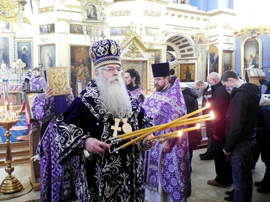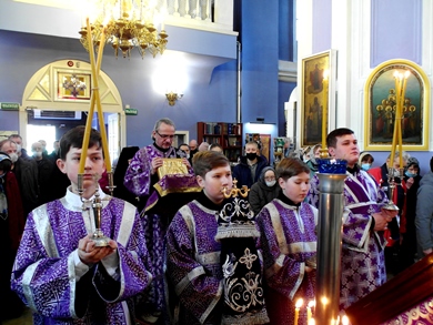 ПЕТРОЗАВОДСК. 11 апреля 2021 года, в неделю четвертую Великого поста, прп. Иоанна Лествечника, митрополит Петрозаводский и Карельский Константин совершил Божественную литургию в Крестовоздвиженском соборе Петрозаводска. Накануне вечером, митрополит Константин совершил всенощное бдение в кафедральном соборе. Его Высокопреосвященству сослужили: секретарь Петрозаводского епархиального управления иерей Константин Павлюченко, штатные клирики Крестовоздвиженского собора и протодиакон Владимир Морозов. Песнопения Божественной литургии исполнял хор Крестовоздвиженского прихода. Владыка Константин вознес у Престола Божия молитву об избавлении от морового поветрия. Также была вознесена сугубая молитва о медицинских работниках, исполняющих свой долг в это тяжелое время. После прочтения Евангелия митрополит Константин обратился к пастве архипастырским словом. Проповедь владыки полностью можно послушать на канале Петрозаводская епархия в Ютубе и на сайте епархии. В это воскресенье, 11 апреля , Церковь отмечает день памяти преподобного Иоанна Лествичника — христианского богослова, византийского философа, игумена Синайского монастыря. Преподобный Иоанн является автором замечательного духовного творения, называемого «Лествицей», по которому и получил прозвание Лествичника. В литургийном Евангелии в воскресный день четвертой седмицы Великого Поста Церковь к утешению и назиданию постящихся, Божественным свидетельством утверждая могущество поста и молитвы, открывшее Иоанну лествицу рая и возведшее его на высоту духовного совершенства, благовествует, что дух злобы изгоняется из человека только молитвою и постом, и вместе предвозвещает приближающуюся радость воскресения Христова (Мк. 17-31). Информационный отдел Петрозаводской и Карельской епархии, 2021 год