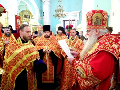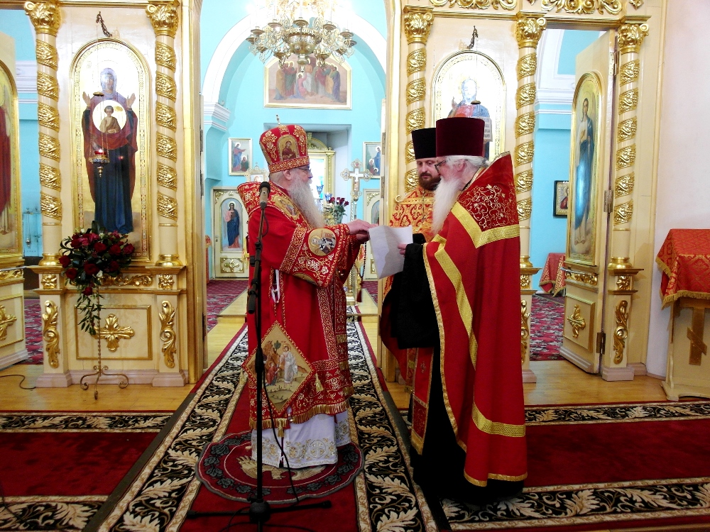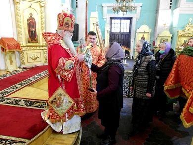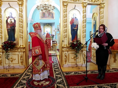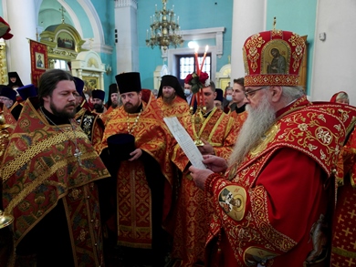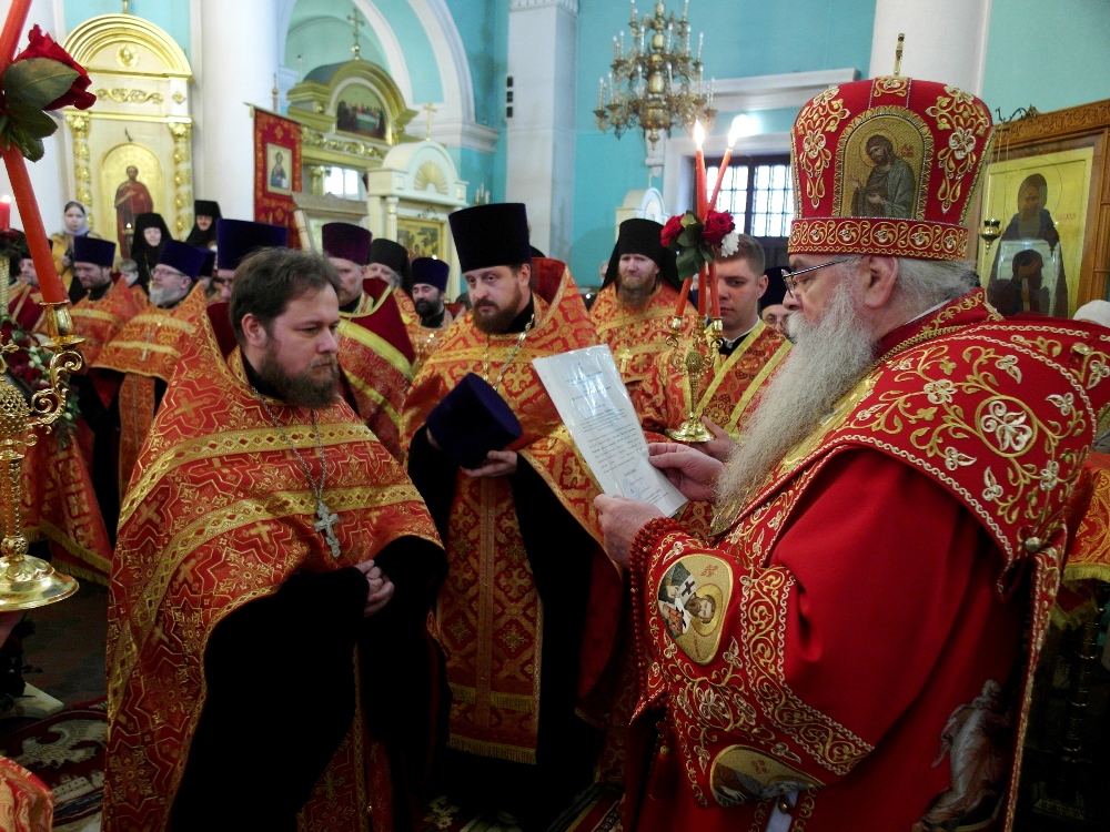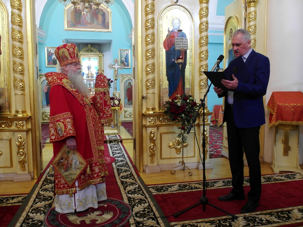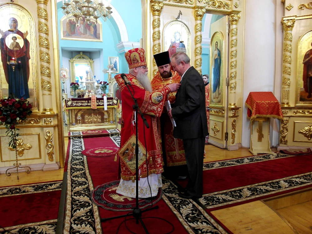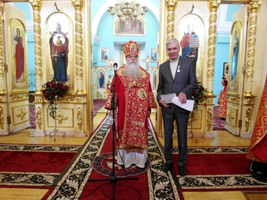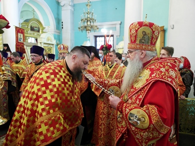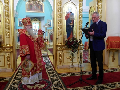 Петрозаводск. 3 мая 2021 года, Понедельник Светлой седмицы, во второй день праздника светлого Христова Воскресения, Глава Карельской Митрополии, Председатель Синодальной богослужебной комиссии РПЦ, митрополит Петрозаводский и Карельский Константин совершил пасхальную Великую вечерню в Александро-Невском кафедральном соборе. Его Высокопреосвященству сослужили духовенство епархии. На малом входе митрополит Константин совершил награждение клириков епархии иерархическими богослужебными наградами Русской Православной Церкви. Высоких наград удостоились следующие пресвитеры: - Протоиерей Вячеслав Володин, настоятель храма Рождества Христова г. Суоярви был удостоен права ношения креста с украшениями. - Иерей Петр Кирьянов, настоятель храма иконы Божией Матери «Живоносный Источник» п. Марциальные Воды удостоен права ношения наперсного креста. - Иерей Сергий Теплоухов, настоятель храма святителя Николая Чудотворца в Эссойла, удостоен права ношения камилавки. - Иерей Олег Смирнов, клирик Пантелеймоновского храма г.Петрозаводска, удостоен права ношения камилавки. Во время вечернего богослужения был пропет Великий прокимен «Кто Бог Велий...» и прочитано Пасхальное Евангелие. По отпусте вечерни Глава Карельской Митрополии Владыка Константин поздравил клириков епархии со Светлым Праздником Христова Воскресения. По завершении богослужения главу Карельской митрополии, духовенство и всех православных жителей Карелии с праздником Воскресения Христова поздравил от лица Главы РК Министр национальной и региональной политики РК Сергей Викторович Киселев. Затем прозвучали поздравления от председателя карельского Законодательного собрания Шандаловича Элиссана Владимировича. Далее от лица Главы города владыку поздравила – Консультант по связям с общественностью управления организационной работы аппарата Администрации Петрозаводского городского Малеева Жанна Феликсовна и благочинный Центрального округа протоиерей Вадим Антипин. После чего владыка наградил епархиальной медалью преподобного Лазаря Муромского клириков и мирян: - протоиерей Сергий Теплоухов, настоятель храма святителя Николая Чудотворца в Эссойла, удостоен епархиальной медали преподобного Лазаря Муромского II степени. - Иерей Александр Розенфельд, настоятель храма иконы Божией Матери «Скоропослущница» г. Пудож, удостоен епархиальной медали преподобного Лазаря Муромского II степени. - Иерей Евгений Барышев, клирик Александро-Невского кафедрального собора г. Петрозаводска, удостоен епархиальной медали преподобного Лазаря Муромского II степени. - Протодиакон Владимир Морозов, клирик Александро-Невского кафедрального собора г. Петрозаводска, удостоен епархиальной медали преподобного Лазаря Муромского II степени. - главный инженер строительной компании «ВЕК» Николай Игнатьевич Бирко - дежурный Пантелеймоновского храма г. Петрозаводска Шкарупа Владимир Феодорович. Информационный отдел Петрозаводской и Карельской епархии, 2021 год.