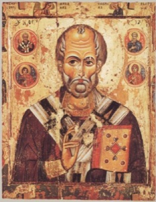 Святитель Николай, архиепископ Мир Ликийских, чудотворец прославился как великий угодник Божий. Он родился в городе Пахаре Ликийской области (на южном побережье Малоазийского полуострова), был единственным сыном благочестивых родителей Феофана и Нонны, давших обет посвятить его Богу. Плод долгих молитв ко Господу бездетных родителей, младенец Николай со дня рождения своего явил людям свет будущей своей славы великого чудотворца. Мать его, Нонна, после родов сразу исцелилась от болезни. Новорожденный младенец еще в купели крещения простоял на ногах три часа, никем не поддерживаемый, воздавая этим честь Пресвятой Троице. Святой Николай во младенчестве начал жизнь постническую, принимал молоко матери по средам и пятницам, лишь один раз, после вечерних молитв родителей. С детских лет Николай преуспевал в изучении Божественного Писания; днем он не выходил из храма, а ночью молился и читал книги, созидая в себе достойное жилище Святого Духа. Дядя его, епископ Татарский Николай, радуясь духовным успехам и высокому благочестию племянника, поставил его во чтеца, а затем возвел Николая в сан священника, сделав его своим помощником и поручив ему говорить поучения пастве. Служа Господу, юноша горел духом, а опытностью в вопросах веры был подобен старцу, чем вызывал удивление и глубокое уважение верующих. Постоянно труждаясь и бодрствуя, пребывая в непрестанной молитве, пресвитер Николай проявлял великое милосердие к пасомым, приходя на помощь страждущим, и раздавал все свое имение нищим. Узнав о горькой нужде и нищете одного ранее богатого жителя его города, святой Николай спас его от большого греха. Имея трех взрослых дочерей, отчаявшийся отец замыслил отдать их на блудодеяние для спасения от голода. Святитель, скорбя о погибающем грешнике, ночью тайно бросил ему в окно три мешочка с золотом и тем спас семью от падения и духовной гибели. Творя милостыню, святитель Николай всегда старался сделать это тайно и скрыть свои благодеяния. Отправляясь на поклонение святым местам в Иерусалим, епископ Патарский вручил управление паствой святому Николаю, который и исполнял послушание с тщанием и любовью. Когда епископ возвратился, тот, в свою очередь, испросил благословение на путешествие в Святую Землю. По дороге святой предсказал надвигавшуюся бурю, грозящую кораблю потоплением, ибо видел самого диавола, вшедшего на корабль. По просьбе отчаявшихся путников он умилил своей молитвой морские волны. По его молитве был поставлен здравым один корабельщик-матрос, упавший с мачты и разбившийся насмерть. Достигнув древнего города Иерусалима, святой Николай, взойдя на Голгофу, возблагодарил Спасителя рода человеческого и обошел все святые места, поклоняясь и творя молитву. Ночью на Сионской горе сами собой отверзлись запертые двери церкви перед пришедшим великим паломником. Обойдя святыни, связанные с земным служением Сына Божия, святой Николай решил удалиться в пустыню, но был остановлен Божественным гласом, увещавшим его вернуться на родину. Возвратившись в Ликию, святой, стремясь к безмолвному житию, вступил в братство обители, именуемой Святым Сионом. Однако Господь снова возвестил об ином пути, ожидающем его: "Николай, не здесь та нива, на которой ты должен принести ожидаемый Мною плод; но обратись и иди в мир, и да будет прославлено в тебе И