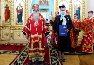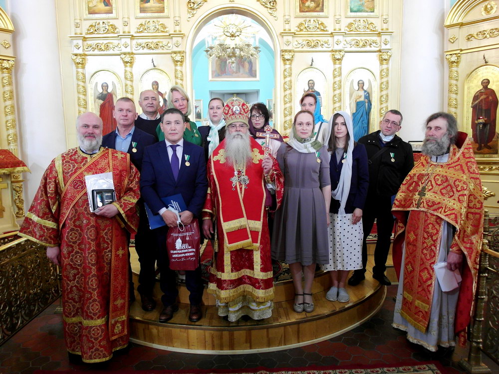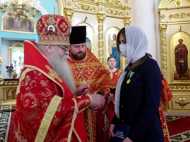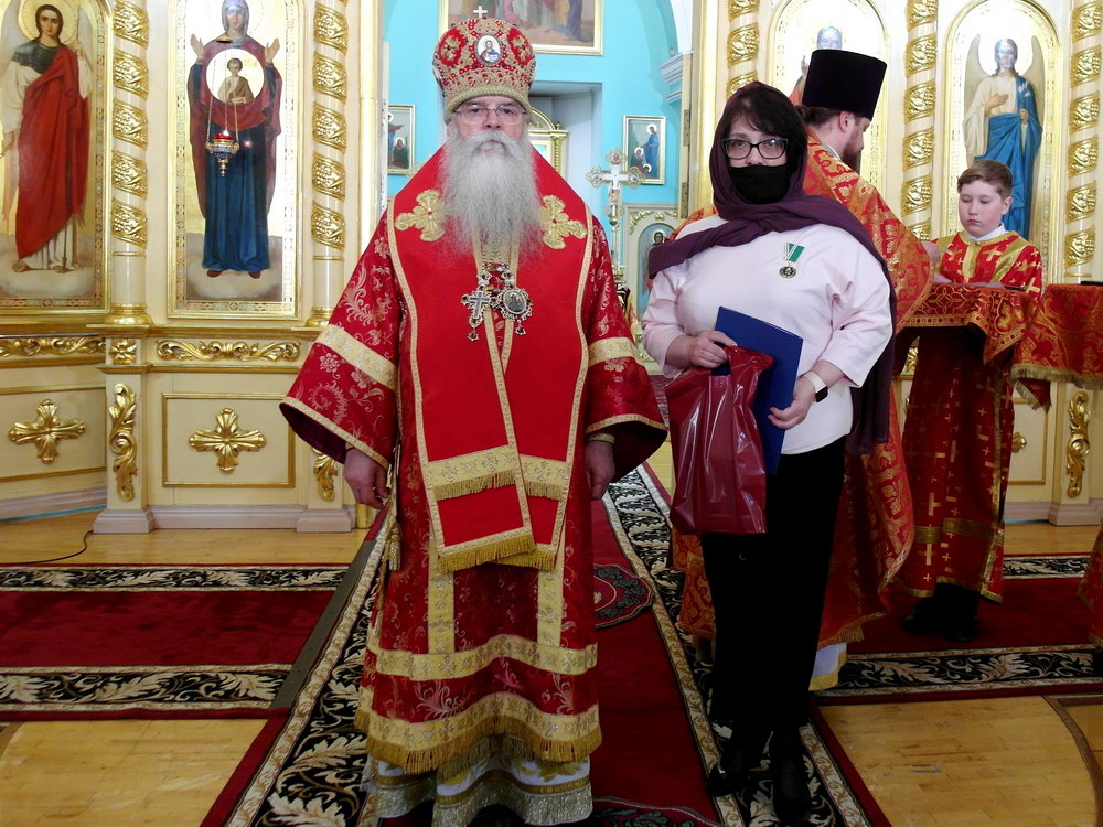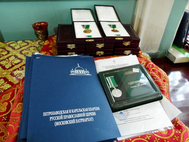 После чего владыка обратился со словом назидания и наградил 11 карельских медицинских работников медалями «Патриаршая благодарность» и клириков епархии медалями прп. Лазаря Муромского.