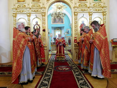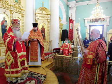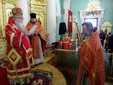 Его Высокопреосвященству сослужили штатные клирики собора, ключарь Ильинского храма иеромонах Аркадий (Лозовский), настоятель прихода храма преподобного Диодора Юрьегорского д. Куганаволок иерей Олег Червяков.