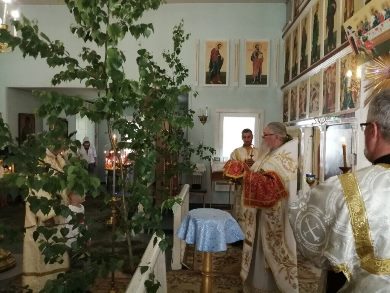 Череда праздничных служб была совершена в храмах Олонецкой Карелии в светлые дни торжества Святой Троицы. Настоятель приходов храмов Спаса Нерукотворенного поселка Еройла и Успения Пресвятой Богородицы города Олонец протоиерей Борис Пуговкин возглавил богослужения в нескольких приходах Олонецкого района. В Троицкую родительскую субботу он совершил Божественную литургию в Успенском храме г.Олонца. В этот же день Всенощное бдение празднику Святой Троицы прошло в храме Спаса Нерукотвореннго. Здесь же на следующий день была совершена Божественная литургия и вечерня с коленопреклоненными молитвами. По окончанию богослужения состоялся крестный ход. В День Святого Духа на Божественную литургию прихожане собрались в храме Успения Пресвятой Богородицы. Информационный отдел Петрозаводской и Карельской епархии по материалам сайта прихода храмов Спаса Нерукотворенного поселка Еройла, 2021 год.