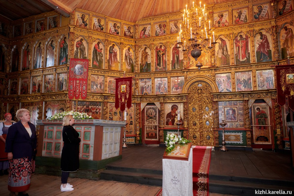 «Многолетняя реставрация Церкви Преображения Господня, а также величественного золоченного резного иконостаса — пример титанического труда отечественных мастеров деревянного зодчества и реставраторов. В общей сложности 100 уникальных специалистов трудились на этом объекте, создан Всероссийский центр сохранения деревянного зодчества им. В. С. Рахманова»,— рассказала Ольга Любимова.