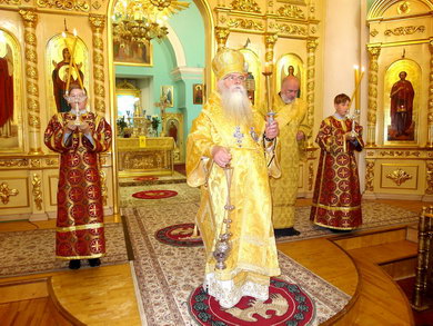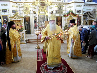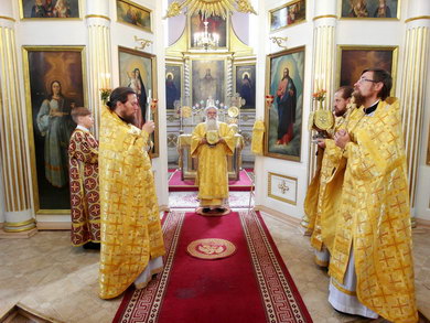 Накануне, вечером, владыка совершил всенощное бдение в кафедральном Александро-Невском соборе.