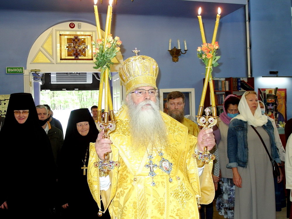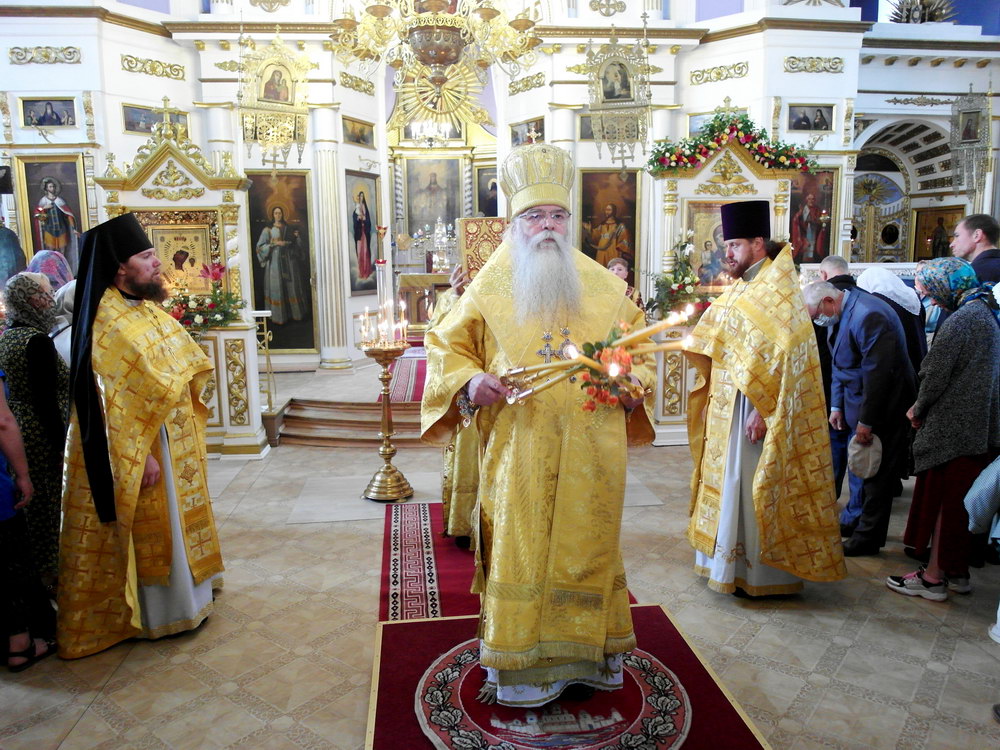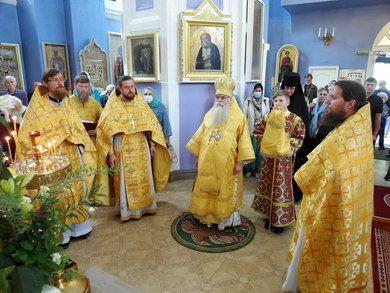 ПЕТРОЗАВОДСК. 25 июля 2021 года, в неделю 5-ю по Пятидесятнице, праздник иконы Божией Матери, именуемой «Троеручица» (VIII), митрополит Петрозаводский и Карельский Константин возглавил Божественную Литургию в Крестовоздвиженском соборе.