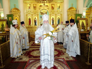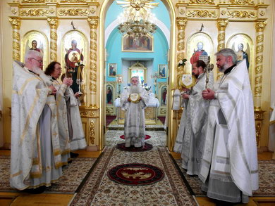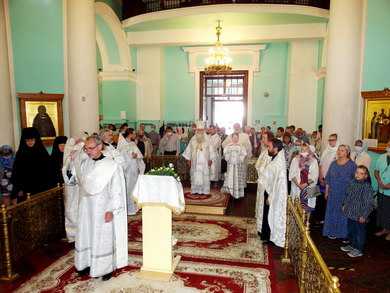 На заупокойной ектении особо молились за усопшего в 2018 году духовника епархии прот. Владимира Кадыкова. На богослужении присутствовали два сына отца Владимира – Михаил и Андрей.