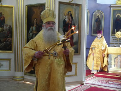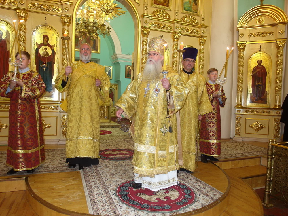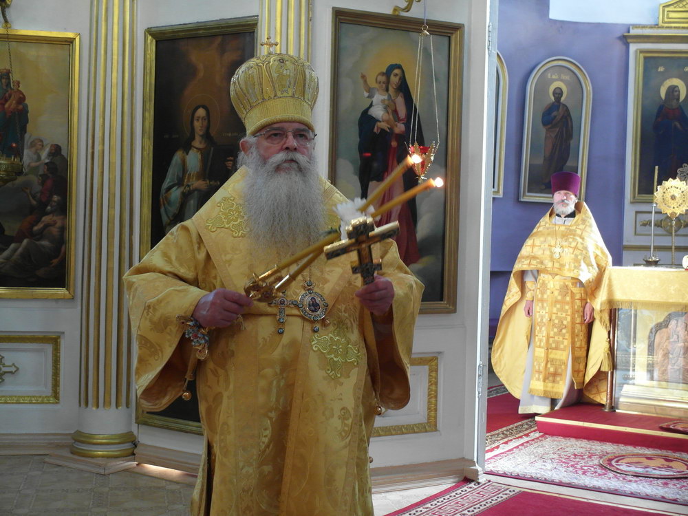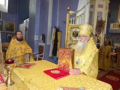 Накануне, вечером, владыка совершил всенощное бдение в кафедральном Александро-Невском соборе.