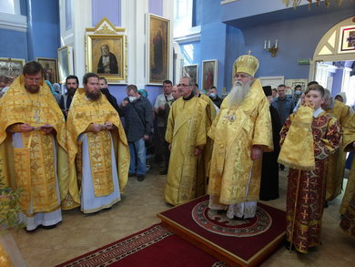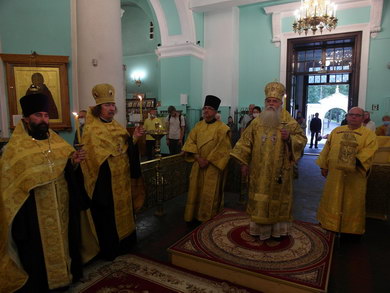 Его Высокопреосвященству сослужили штатные клирики собора.