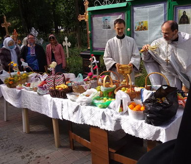 В конце богослужения, по уставу, был совершен чин освящения плодов.