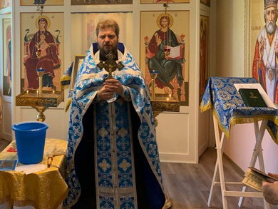 Богослужение возглавил протоиерей Вадим Антипин, благочинный Центрального округа, ему сослужил иерей Михаил Васильев, духовный попечитель часовни во имя иконы Божией Матери «Всецарица» при Центре паллиативной медицинской помощи г. Петрозаводска.
