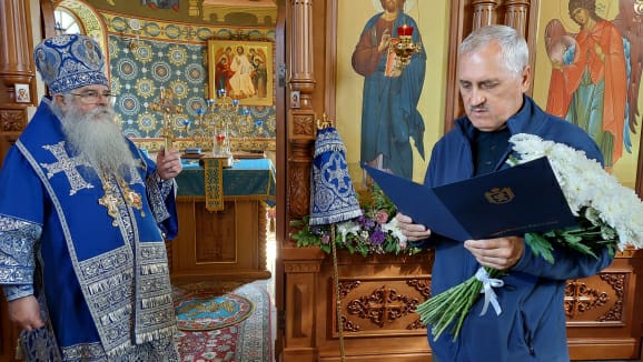 Со словом поздравления ко всем присутствующим обратился Сергей Киселев, который огласил приветственный адрес Главы Республики Карелия А.О. Парфенчикова по случаю праздника Успения Пресвятой Богородицы.