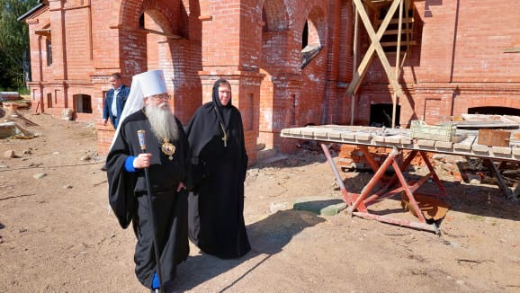 После богослужения митрополит Константин ознакомился с ходом строительства духовно – просветительского центра на территории монастыря, на базе которого планируется открытие курсов базовой подготовки в области богословия для монашествующих Карельской митрополии.
