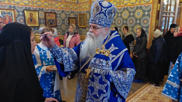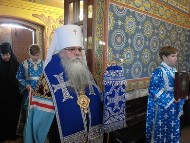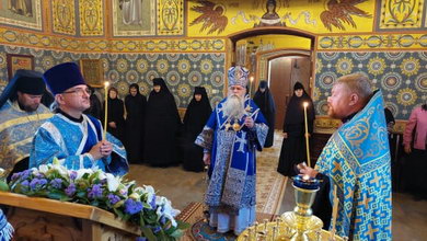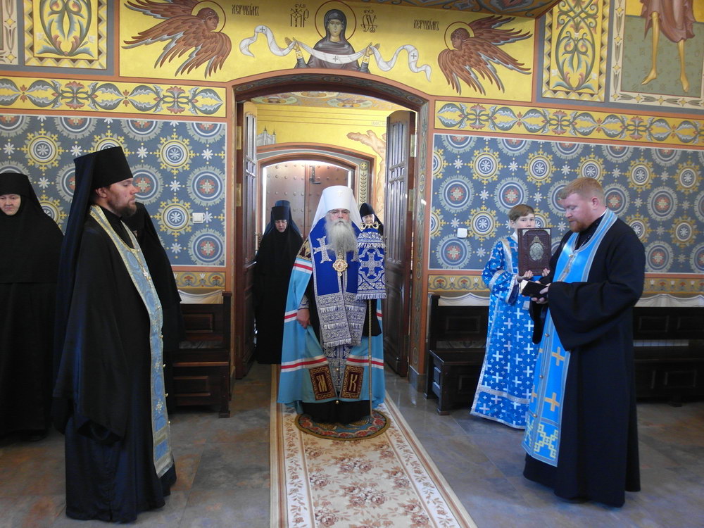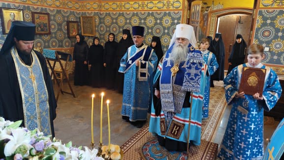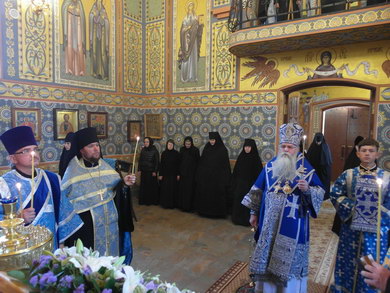 Накануне Правящий Архиерей совершил Всенощное бдение в Успенском храме обители.