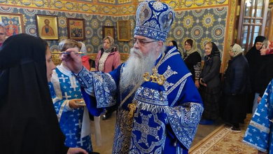 Также была вознесена сугубая молитва о медицинских работниках, исполняющих свой долг в это тяжелое время. После сугубой ектении владыка Константин вознес молитву об избавлении от морового поветрия.