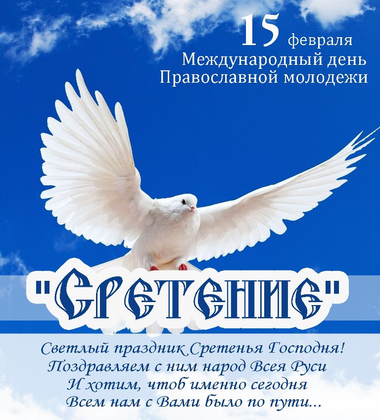 День православной молодежи – международный праздник, официально утвержденный в 1992 году на 14-й ассамблее глав всех поместных православных церквей. Всемирный день православной молодежи отмечается 15 февраля, в день праздника Сретения Господня.