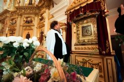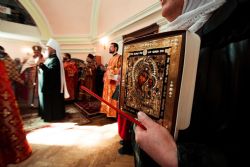 В завершение богослужения состоялось славление Светлому Христову Воскресению и Казанской иконе Царицы Небесной, после чего митрополит Александр обратился к священнослужителям, монашествующим и мирянам со словами приветствия: