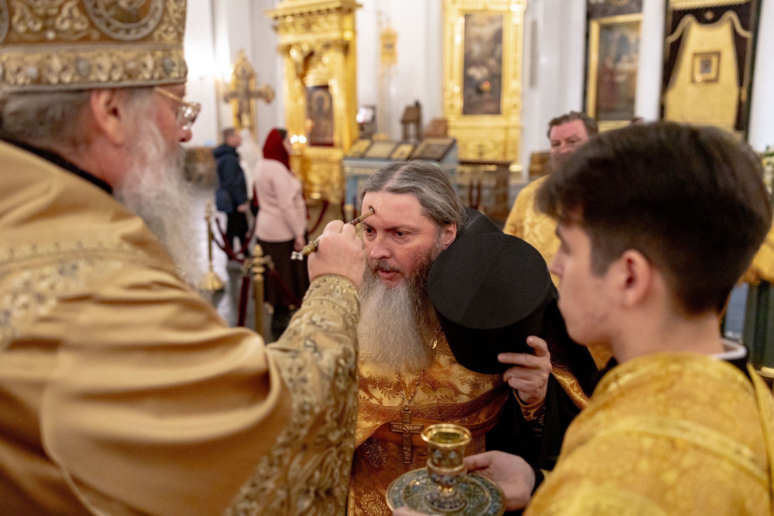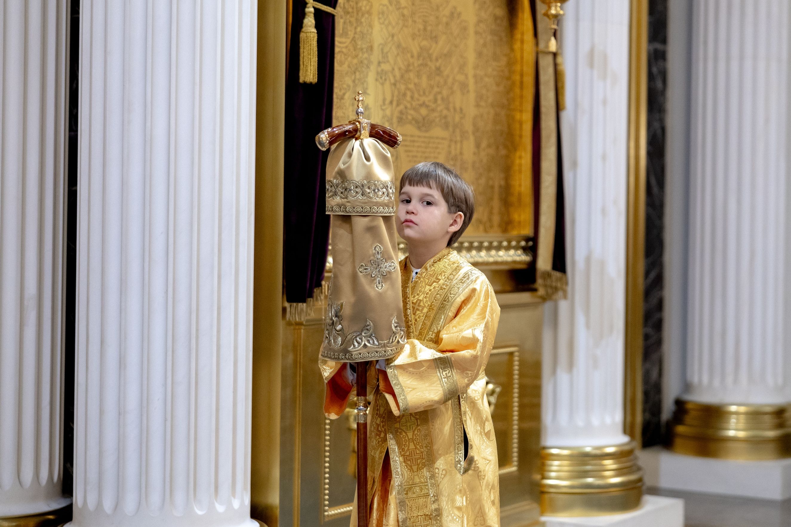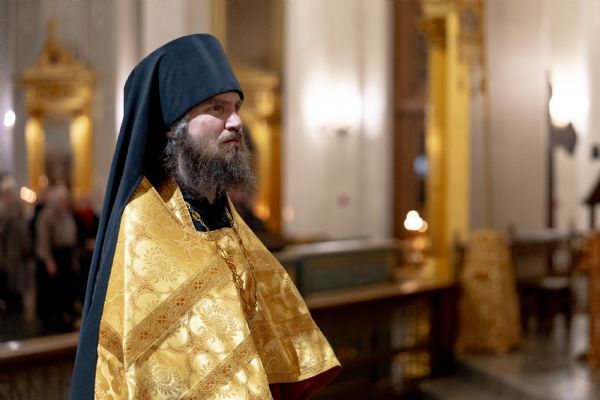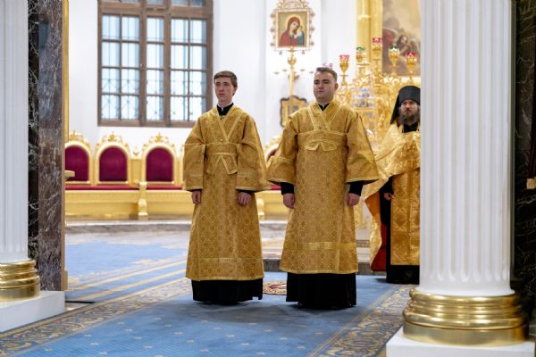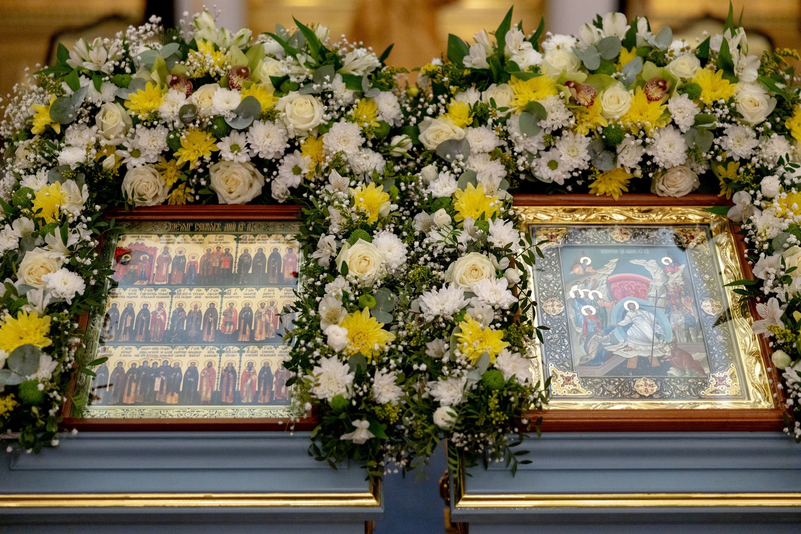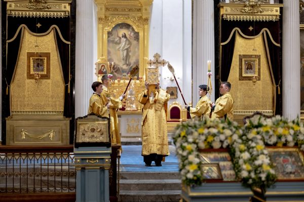 Его Высокопреосвященству сослужила братия Богородицкого монастыря в священном сане. Песнопения исполнили два архиерейских хора: смешанный под управлением Марины Литвиненко и мужской под управлением Дениса Рогова.