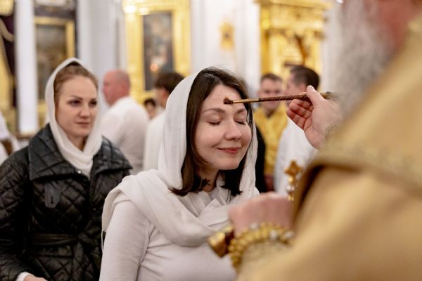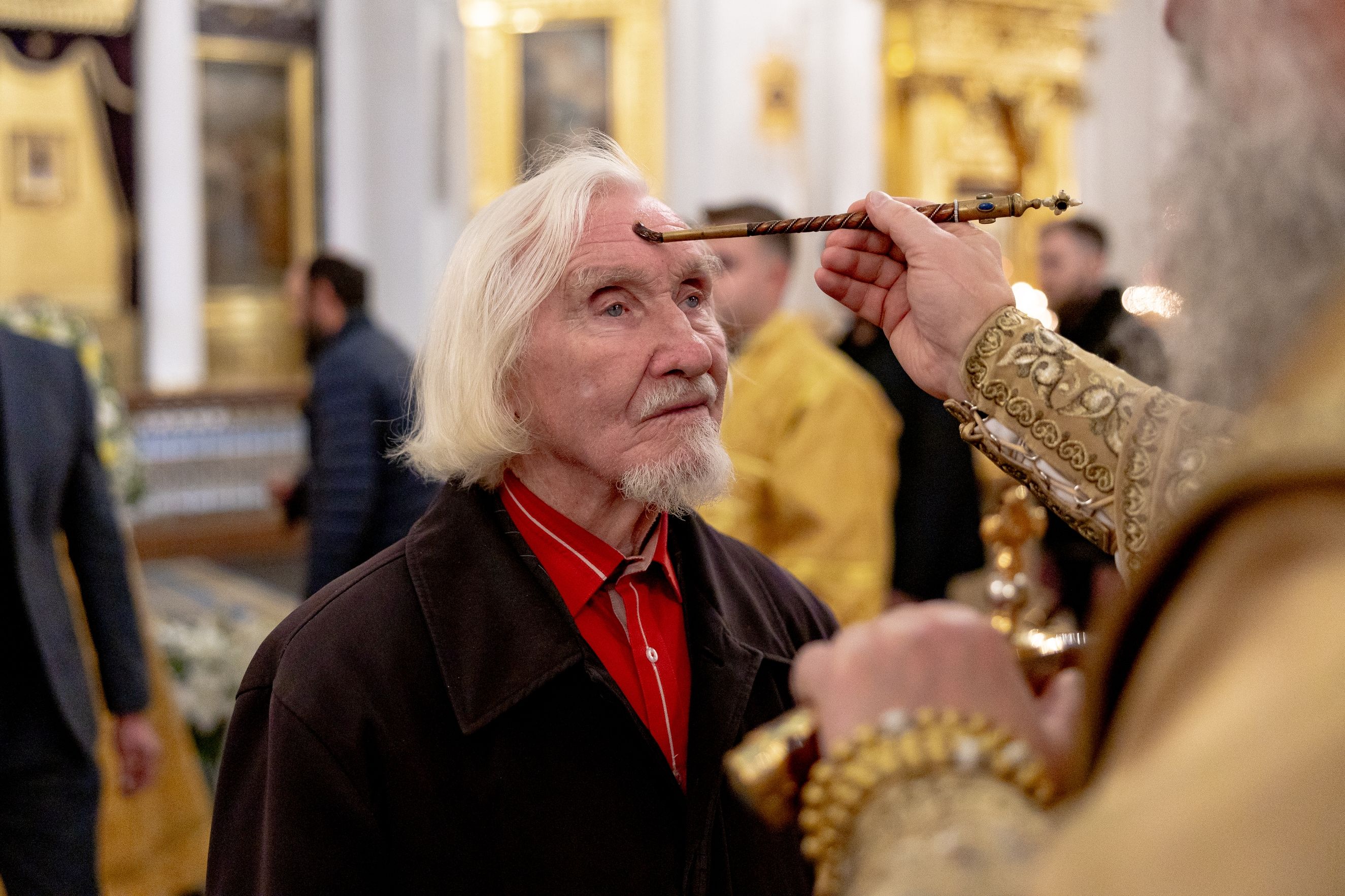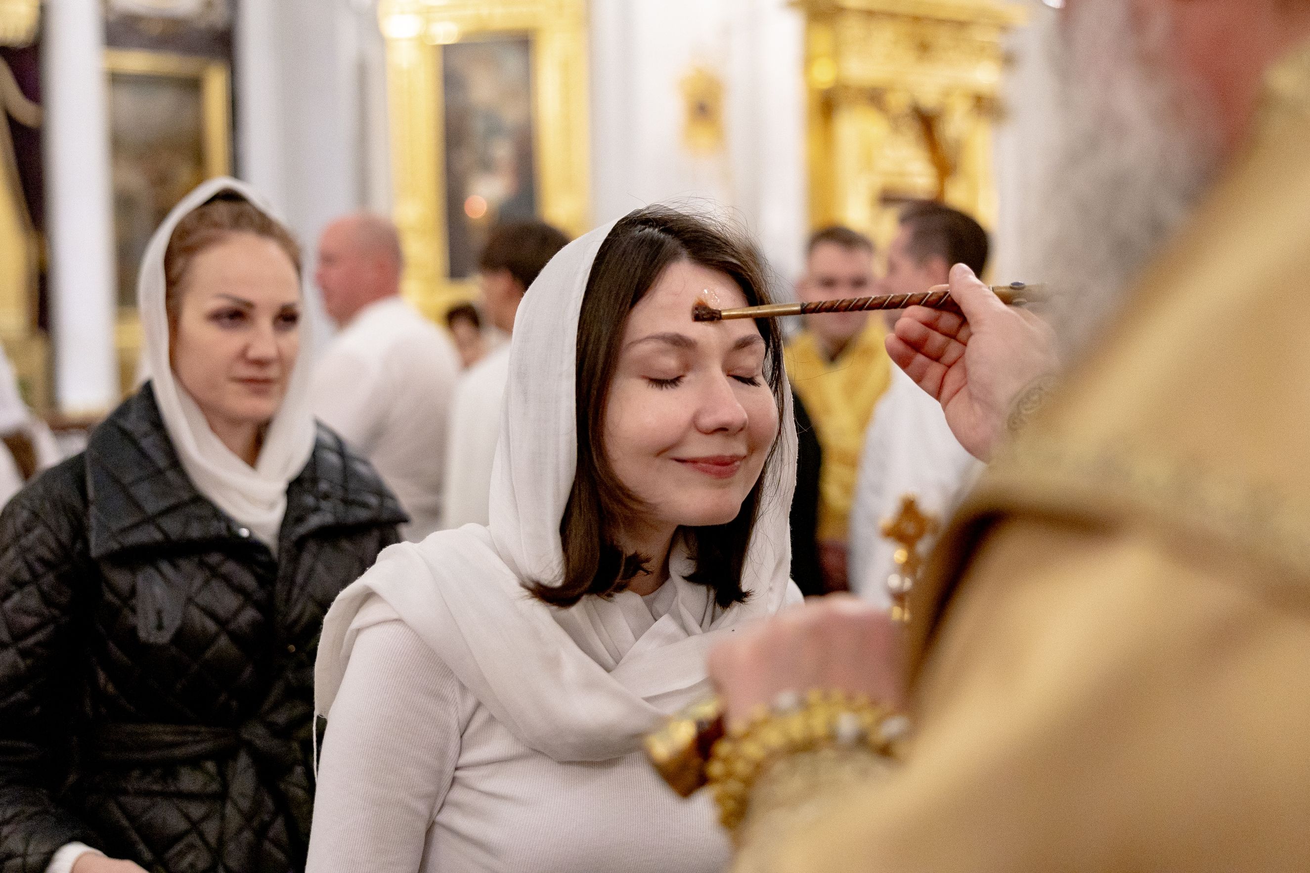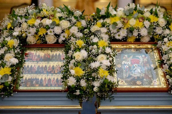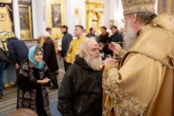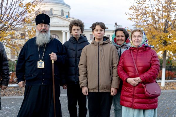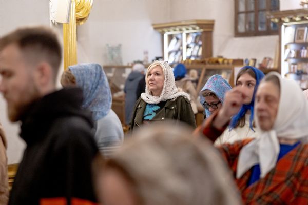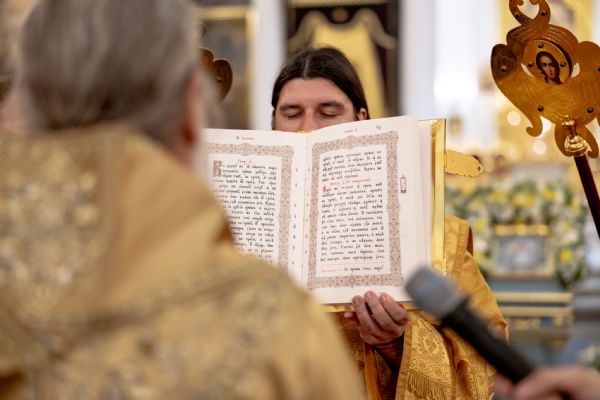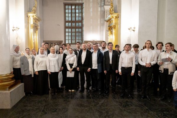 Его Высокопреосвященству сослужила братия Богородицкого монастыря в священном сане. Песнопения исполнили два архиерейских хора: смешанный под управлением Марины Литвиненко и мужской под управлением Дениса Рогова.