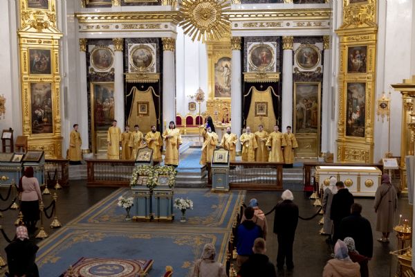 В канун Недели 18-й по Пятидесятнице митрополит Кирилл совершил всенощное бдение в Казанском кафедральном соборе