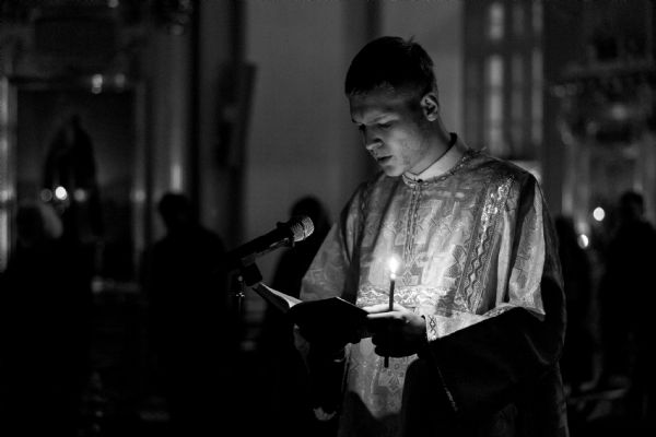 В Евангельском чтении на утрене мы слышали, что апостолы Петр и Иоанн, услышав весть о Воскресении Христа, устремились ко Гробу. Они побежали искать Бога. А мы сегодня ходим по улицам своих городов, видим храмы Божии, но не спешим в них войти. В нас нет стремления к Богу, которое было у Петра и Иоанна.