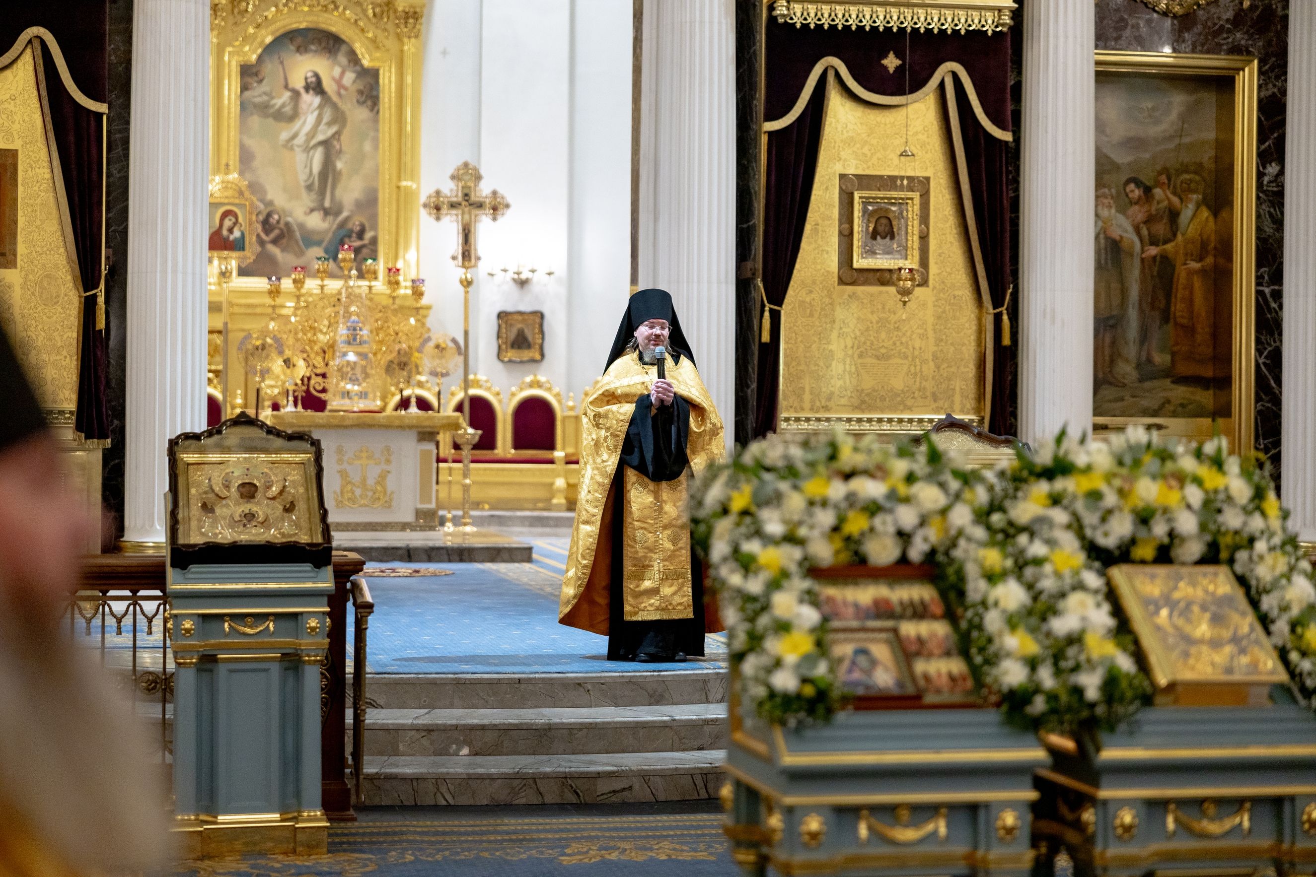После чтения Евангелия на полиелее проповедь произнёс иеромонах Гермоген (Рубан). В завершение было совершено славление Божией Матери перед Её чтимым Казанским образом.