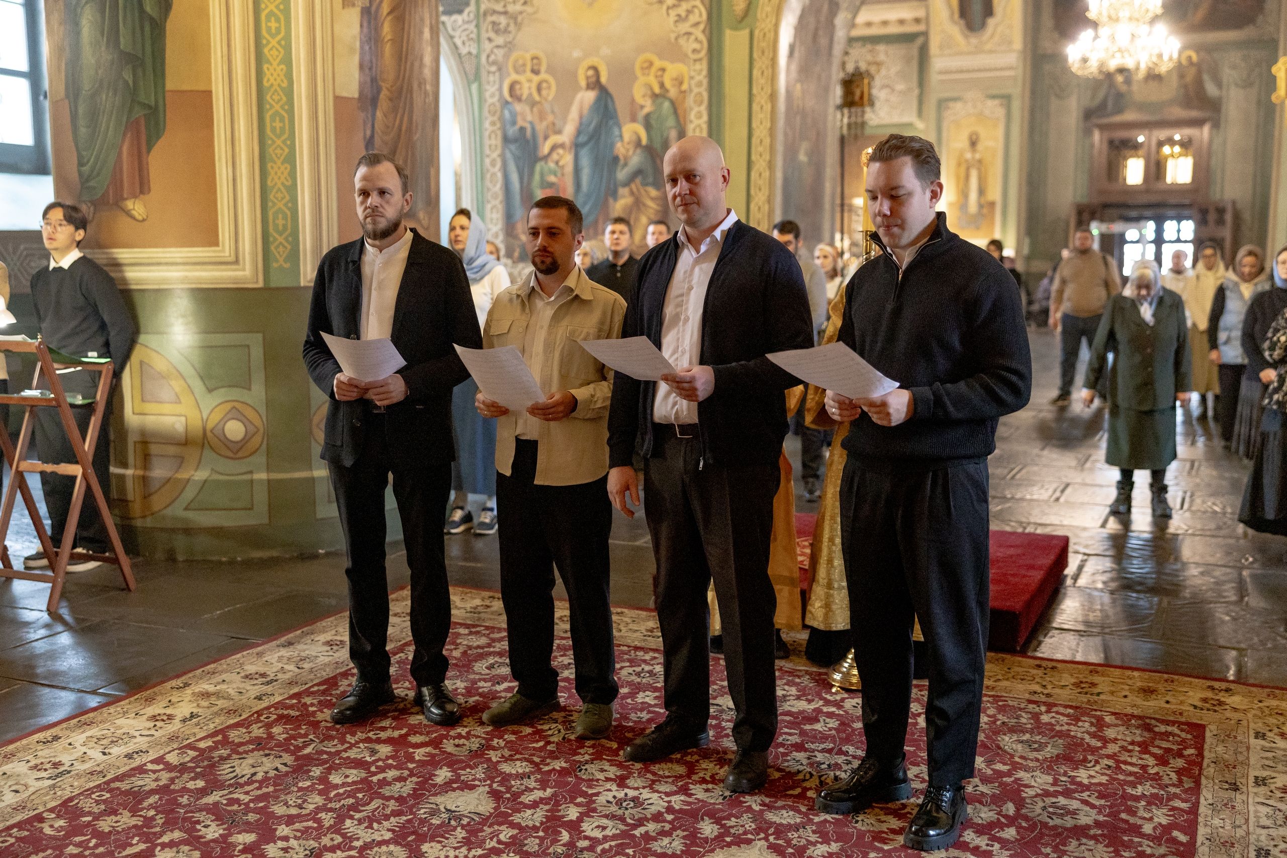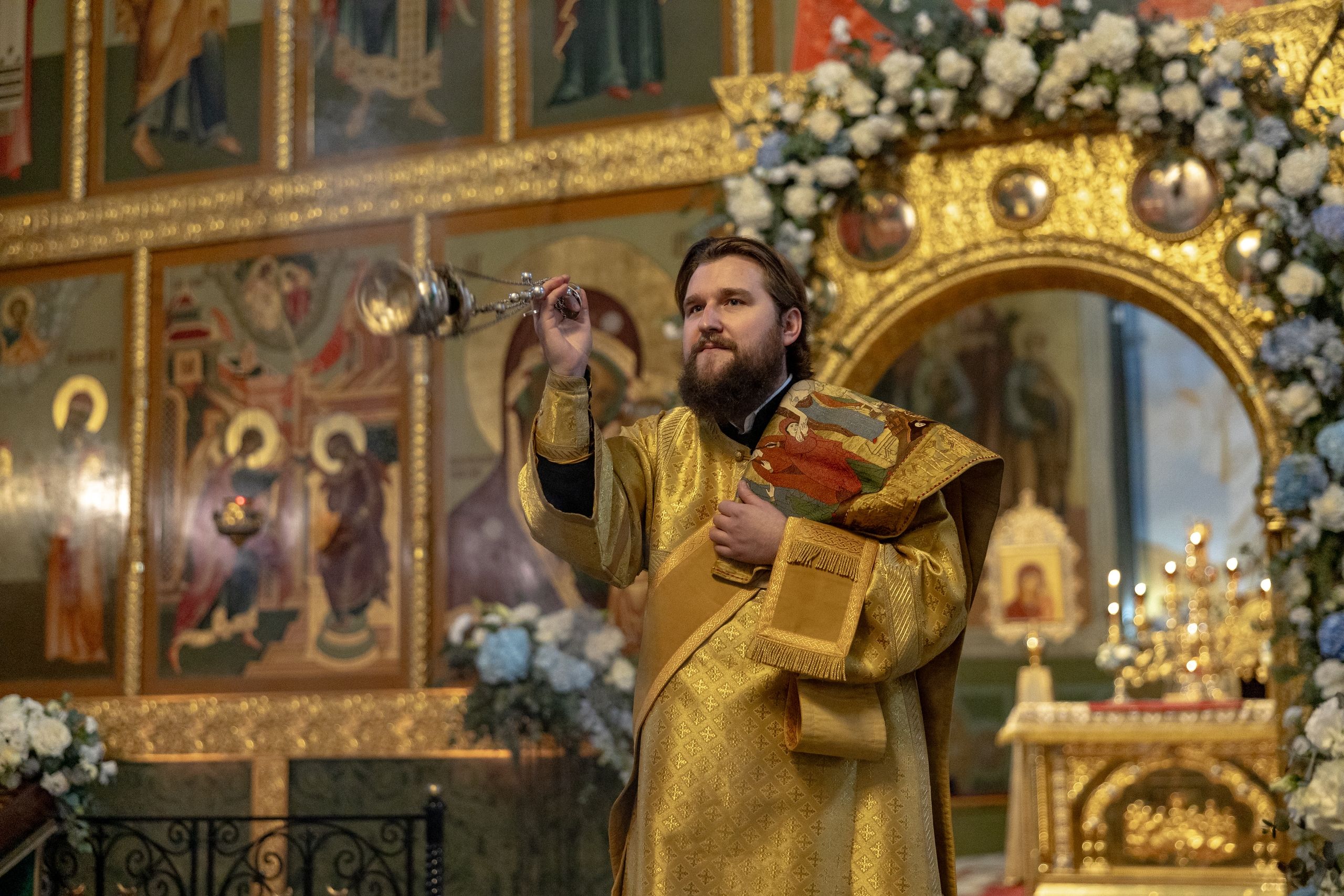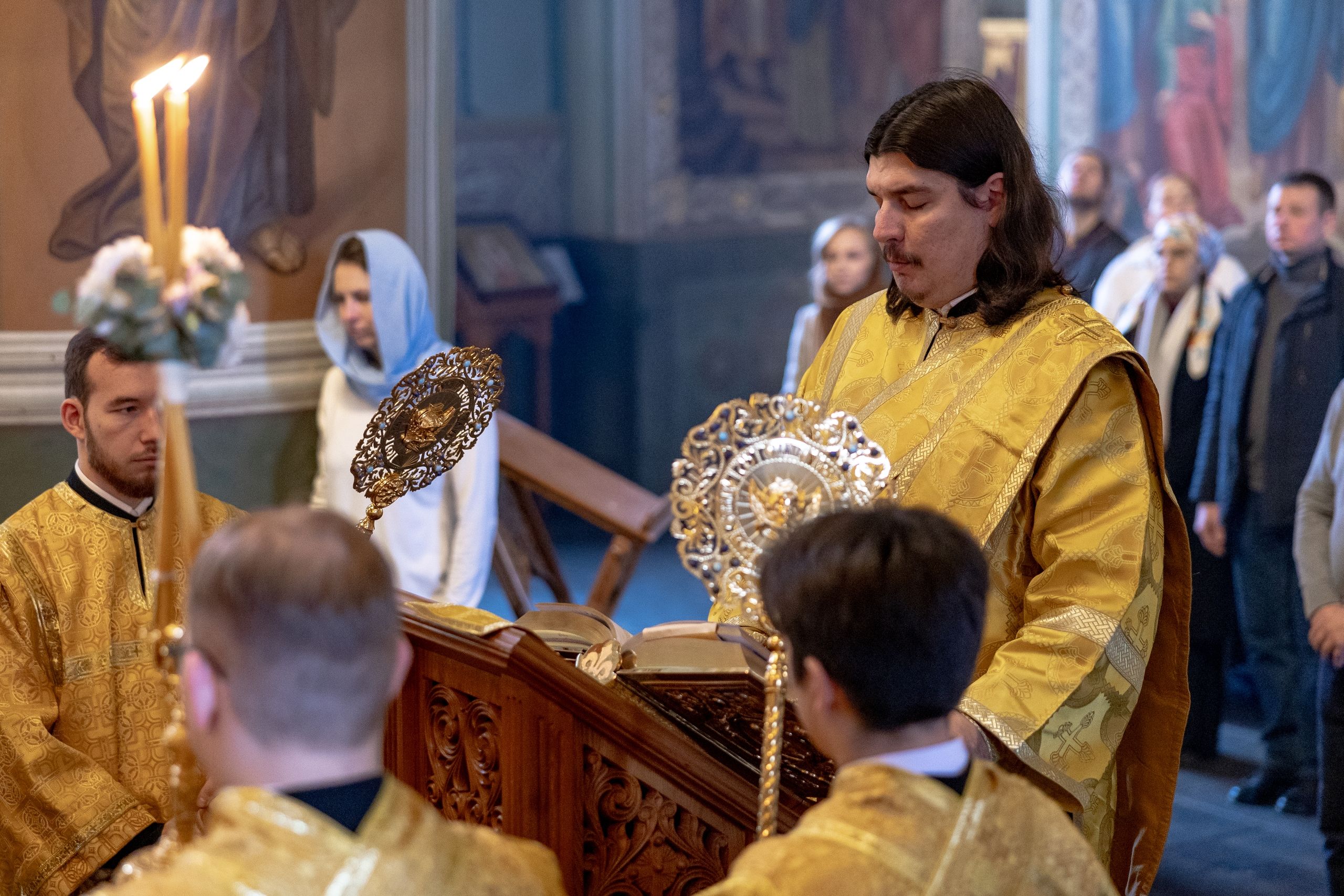 На мирной и сугубой ектениях были вознесены молитвы о Российском воинстве и о мире. По запричастном стихе проповедь произнес иеромонах Иларион (Шпаков).