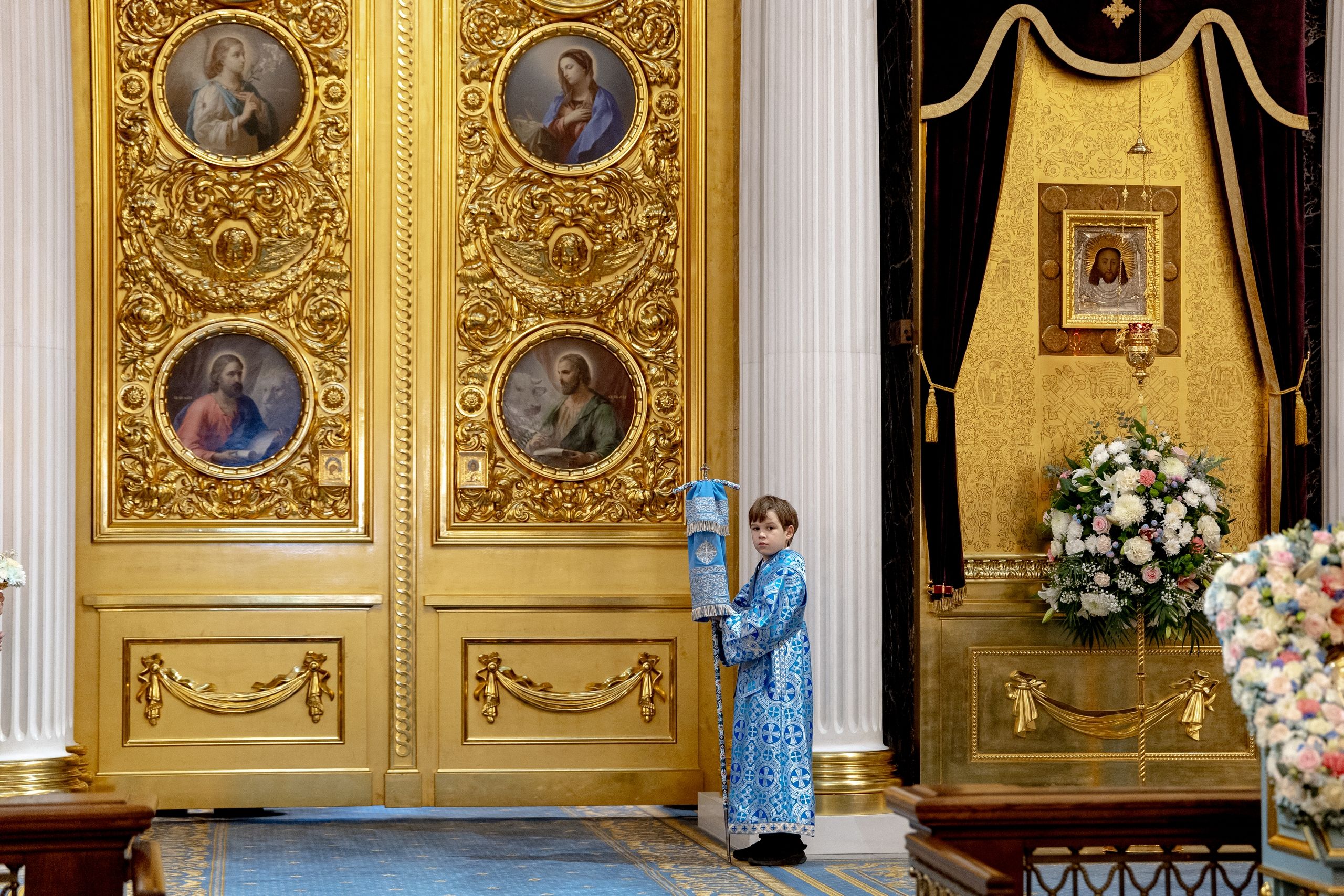 В завершение участники арт-группы LARGO, которые также по традиции прибыли в столицу Татарстана на праздник Казанской иконы Божией Матери, исполнили с амвона духовный кант «О, Всепетая Царица».