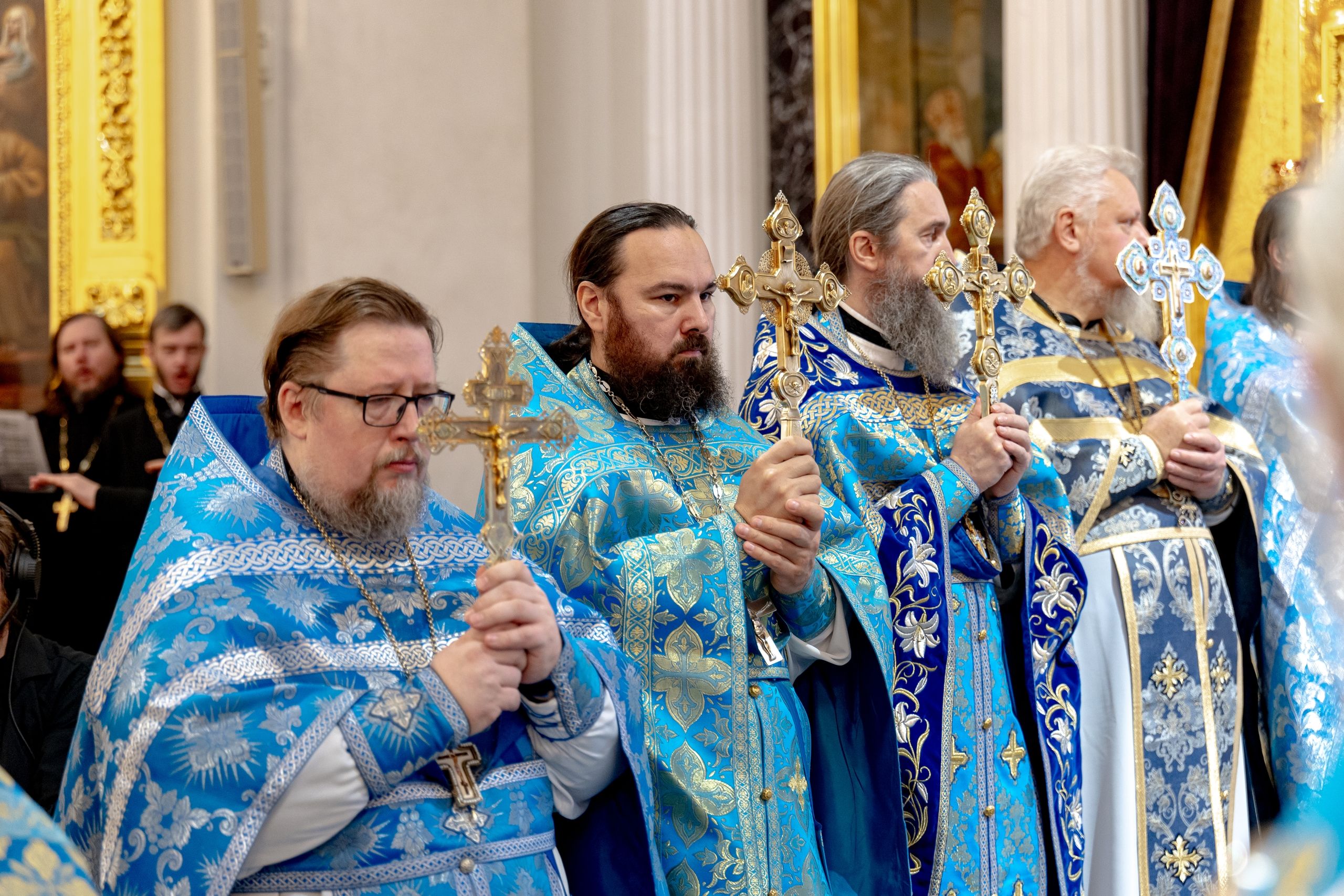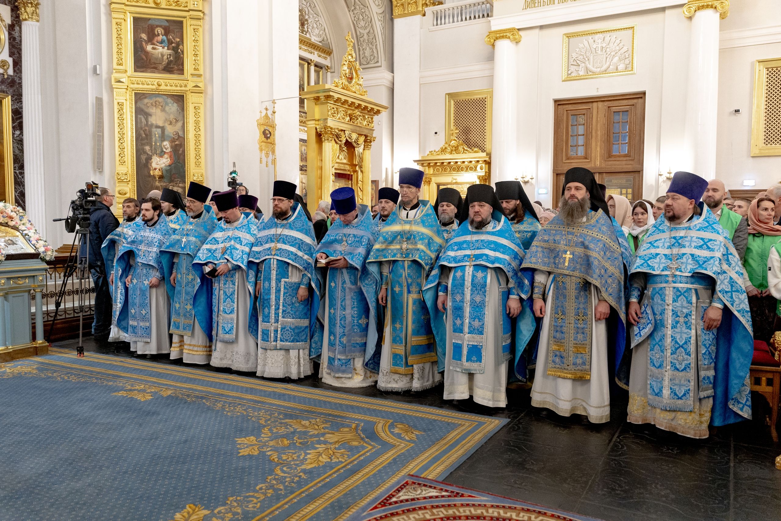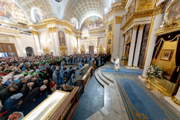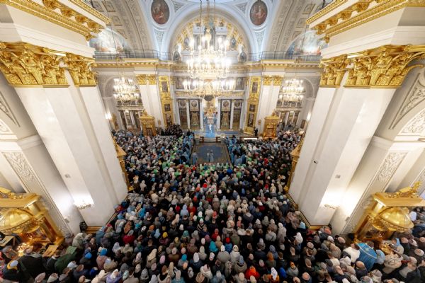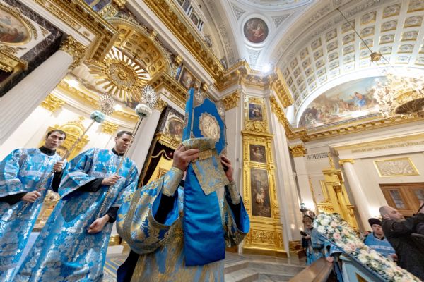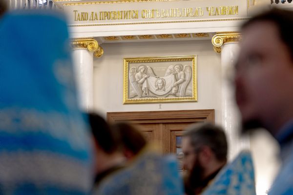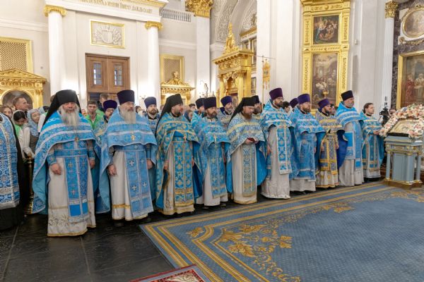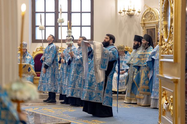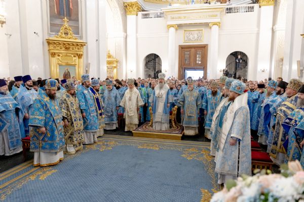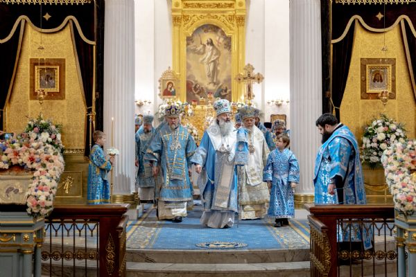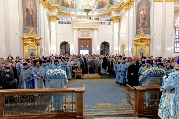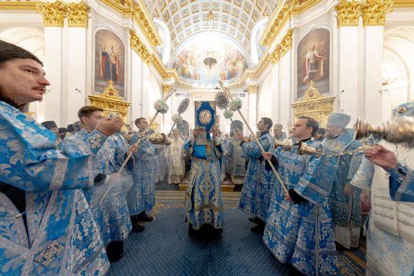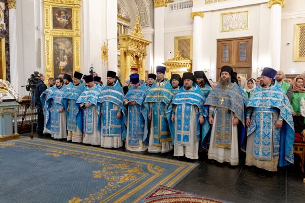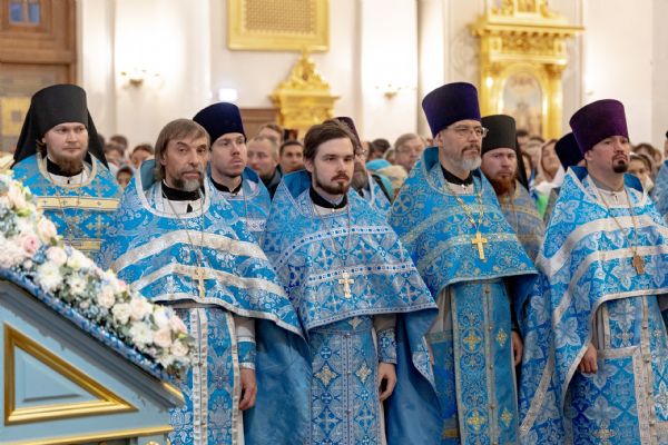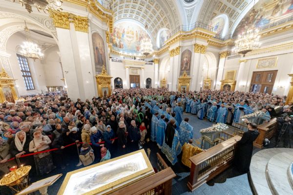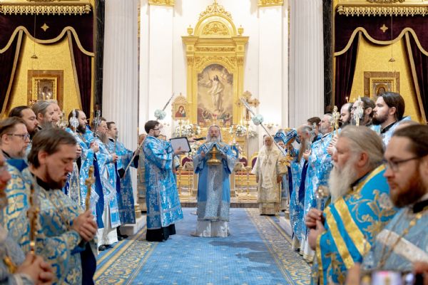 Накануне, 3 ноября, в Казанском кафедральном соборе, построенном на месте явления чудотворного образа Пресвятой Богородицы в 1579 году, было совершено всенощное бдение.