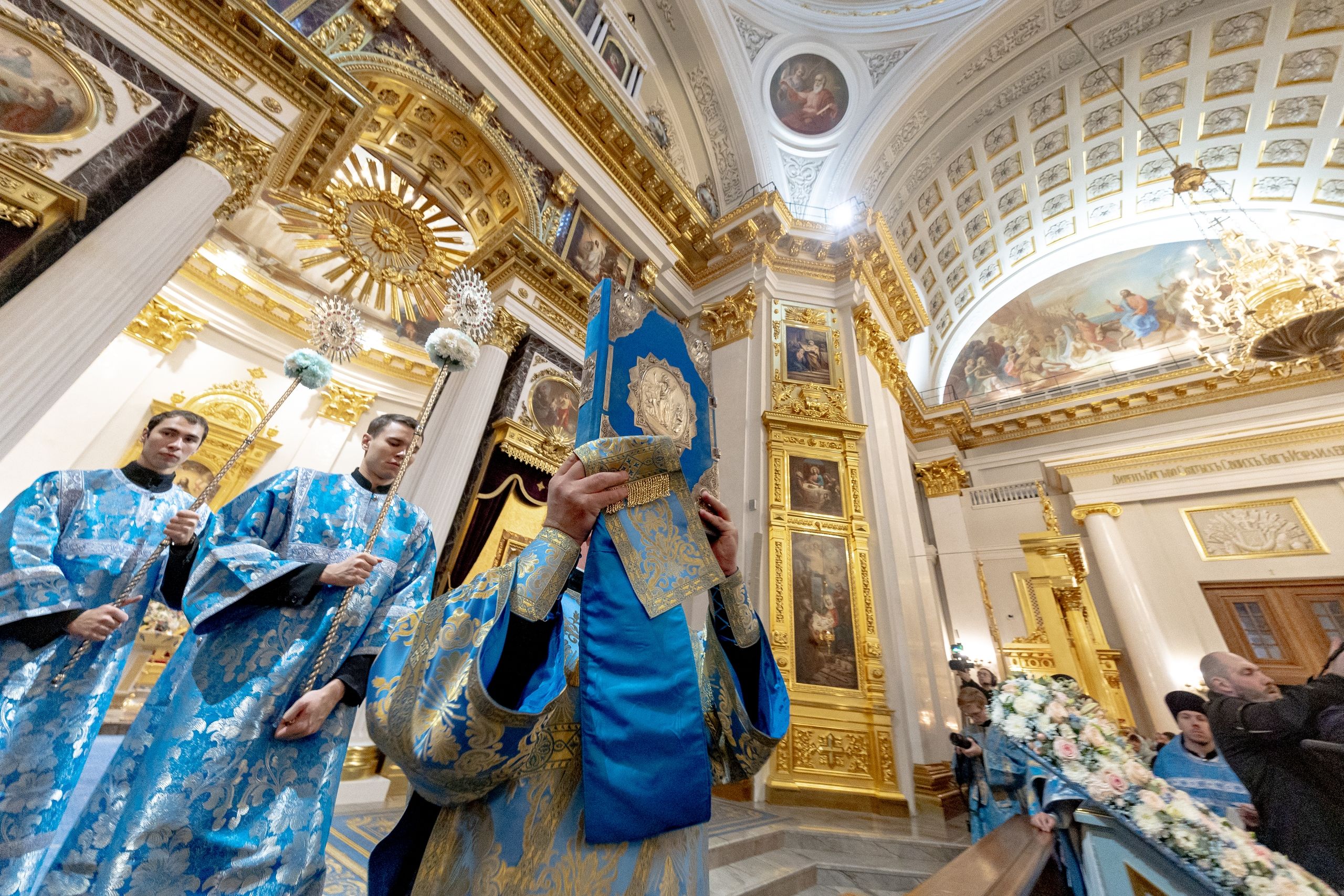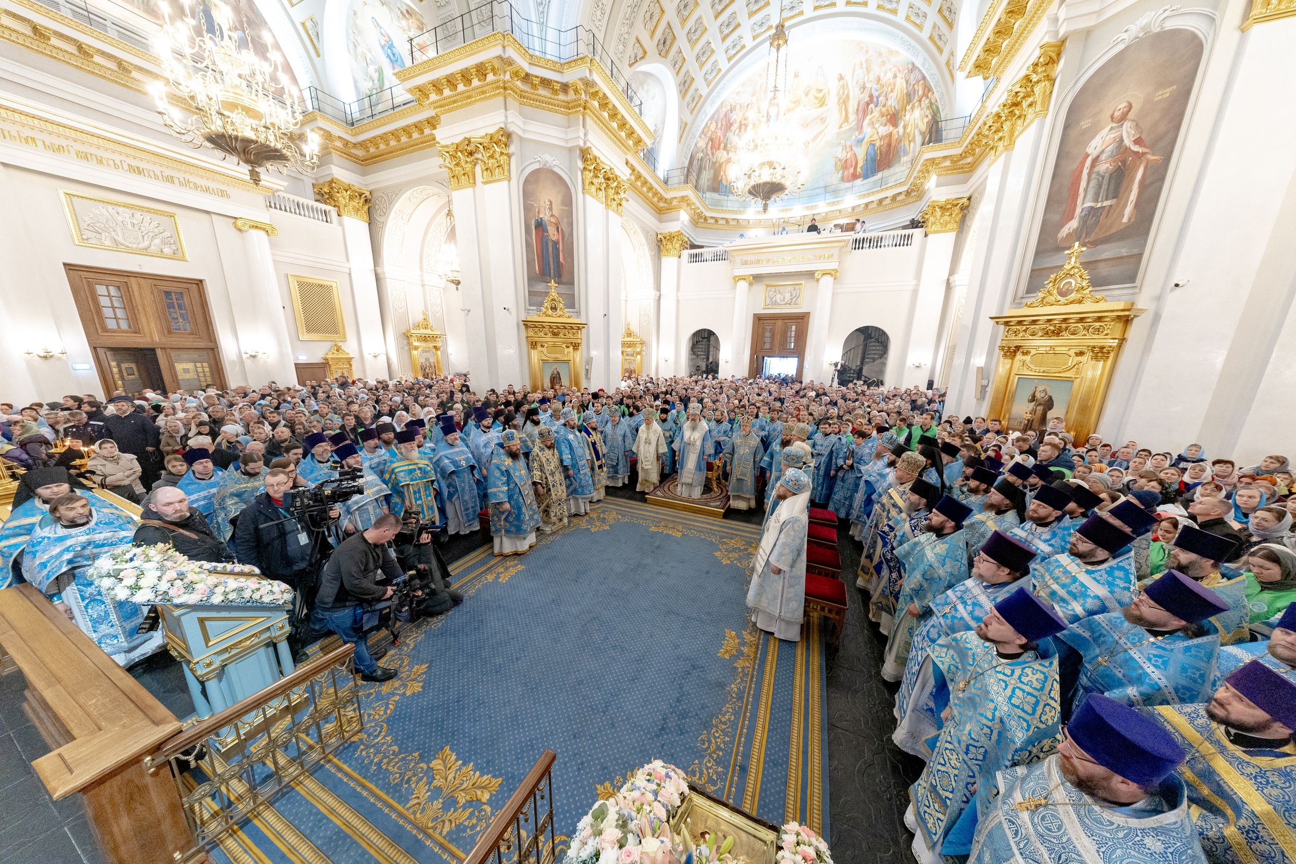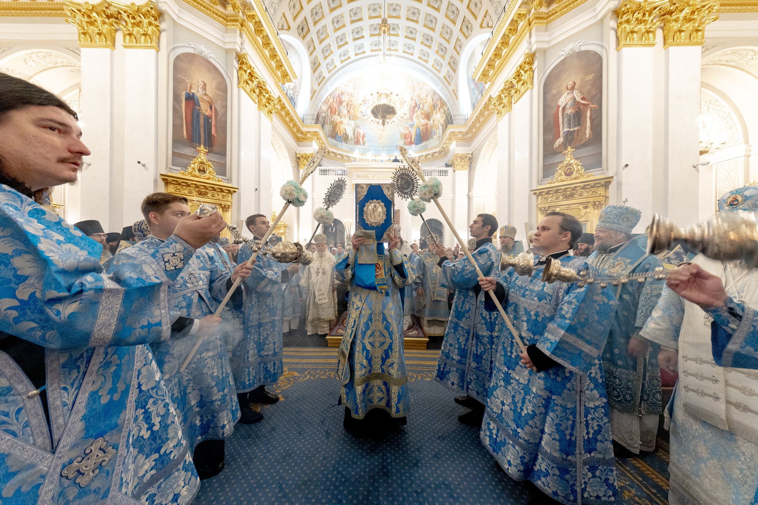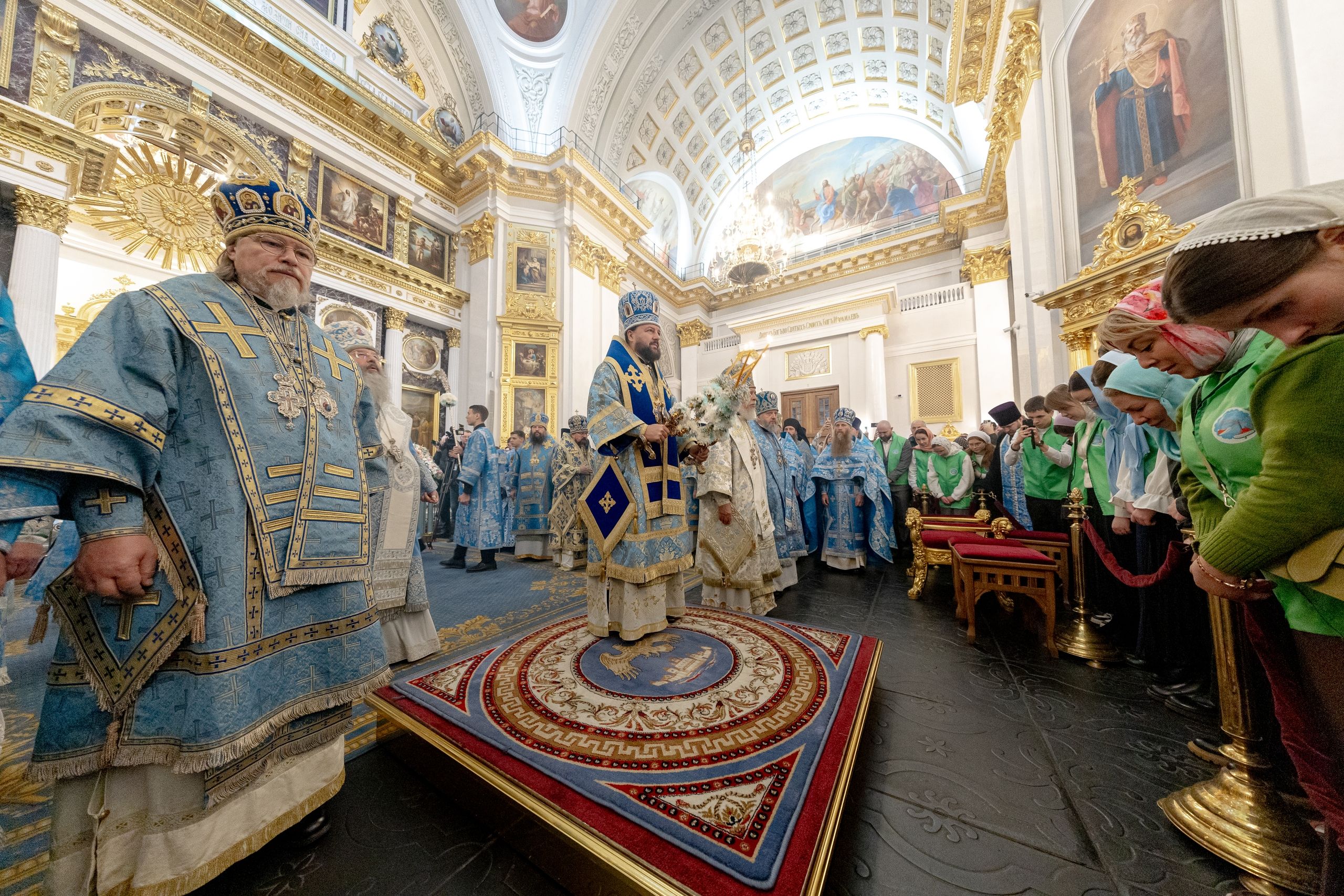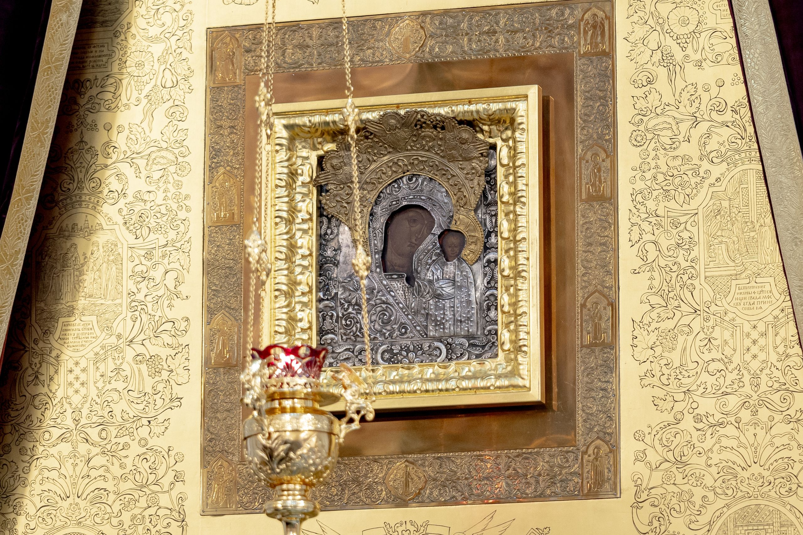 Накануне, 3 ноября, в Казанском кафедральном соборе, построенном на месте явления чудотворного образа Пресвятой Богородицы в 1579 году, было совершено всенощное бдение.
