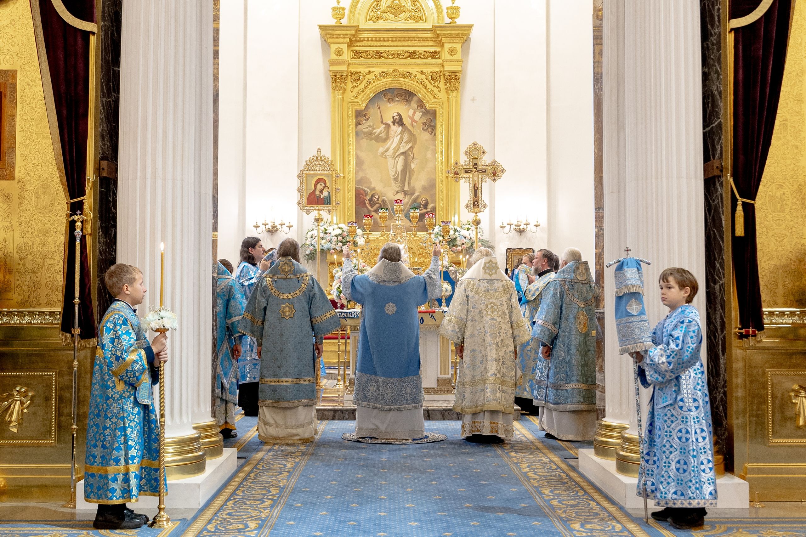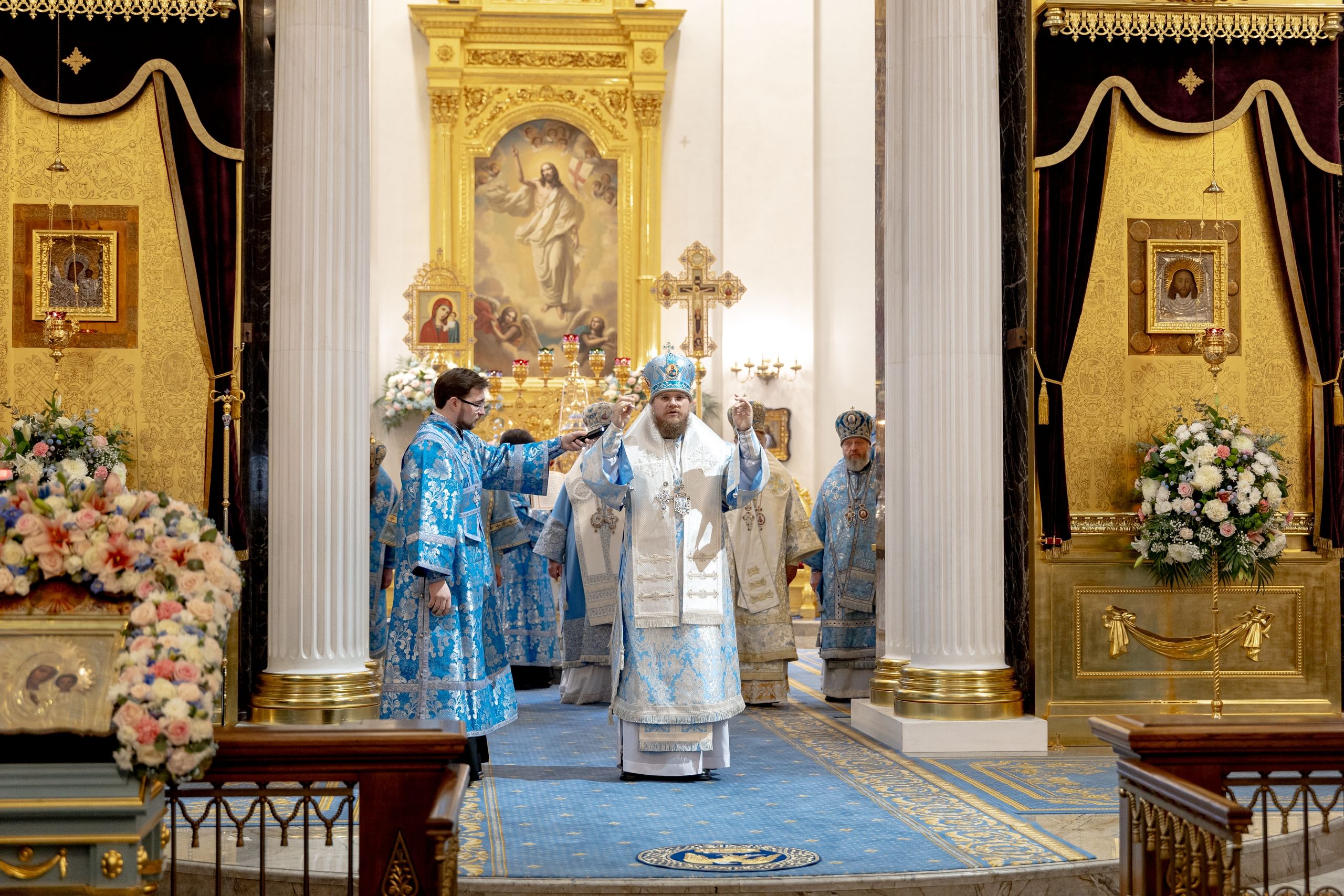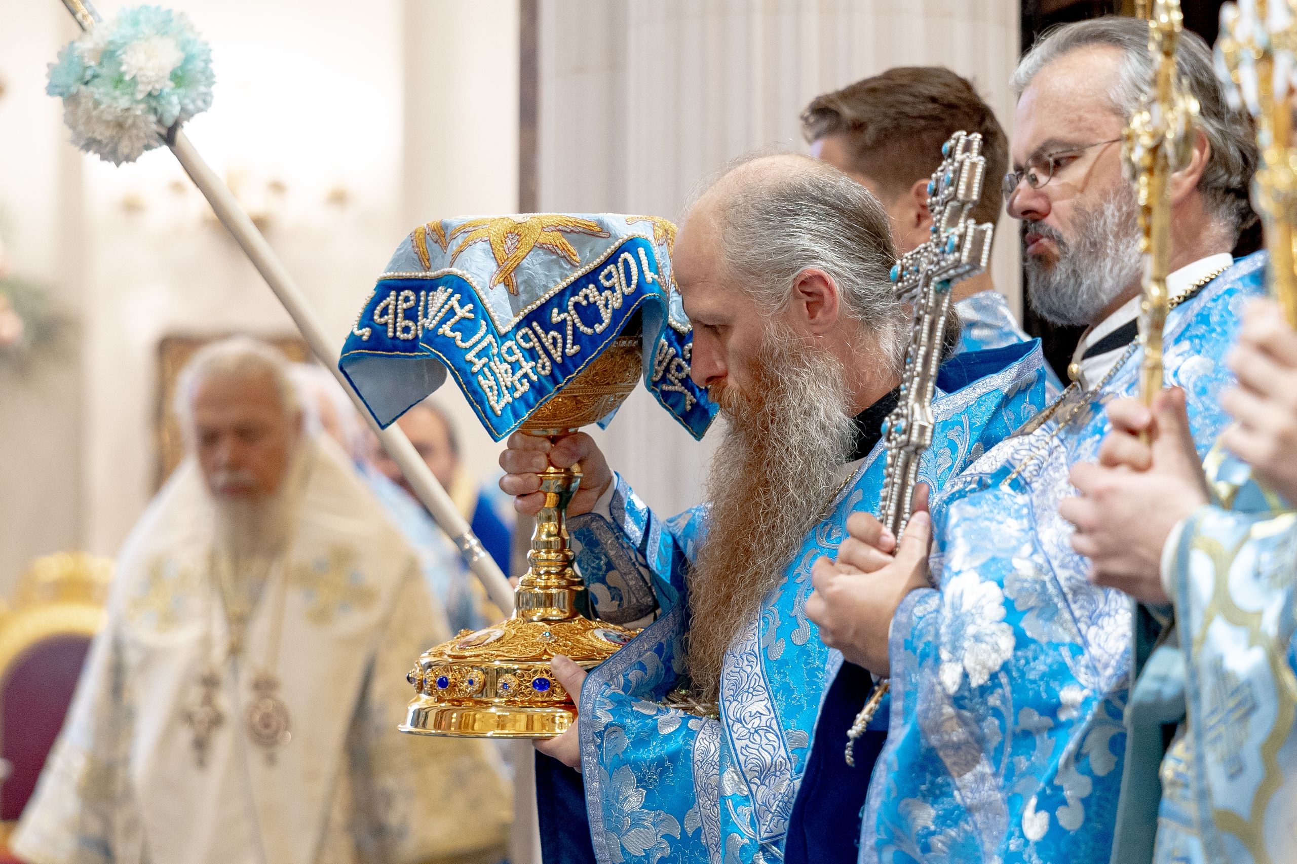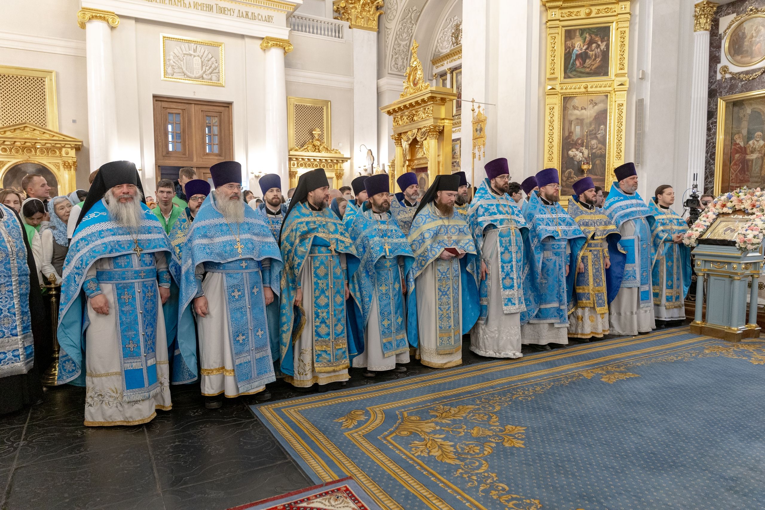 Богослужение совершили: представитель Патриарха Антиохийского и всего Востока при Патриархе Московском и всея Руси митрополит Филиппопольский Нифон, митрополит Казанский и Татарстанский Кирилл, митрополит Рязанский и Михайловский Марк, митрополит Кемеровский и Прокопьевский Аристарх, митрополит Сыктывкарский и Коми-Зырянский Филипп, митрополит Леонид (Горбачев), епископ Чистопольский и Нижнекамский Пахомий, епископ Альметьевский и Бугульминский Мефодий, епископ Мариинский и Юргинский Иннокентий, епископ Галичский и Макарьевский Алексий, епископ Гедеон (Харон), епископ Набережночелнинский и Елабужский Гавриил, епископ Алапаевский и Ирбитский Сергий.