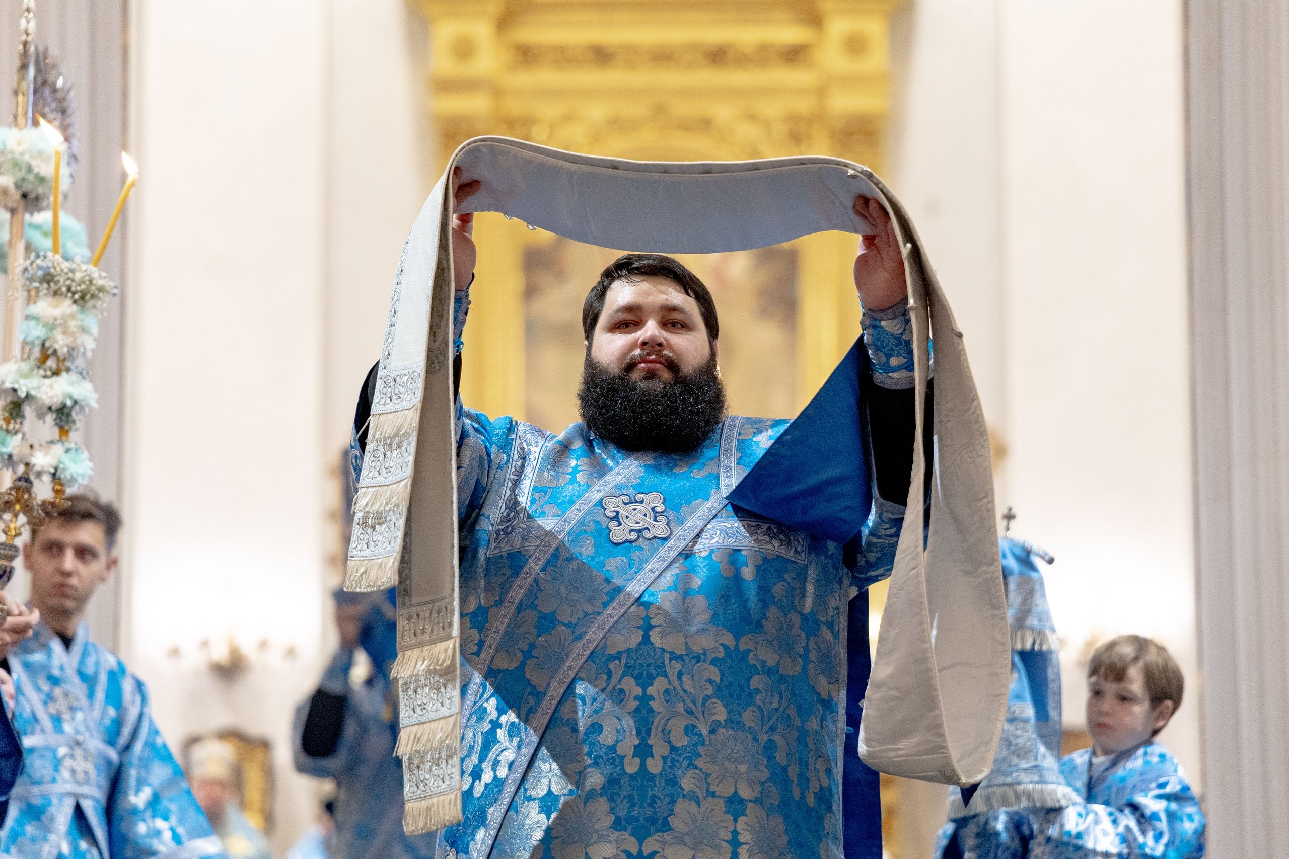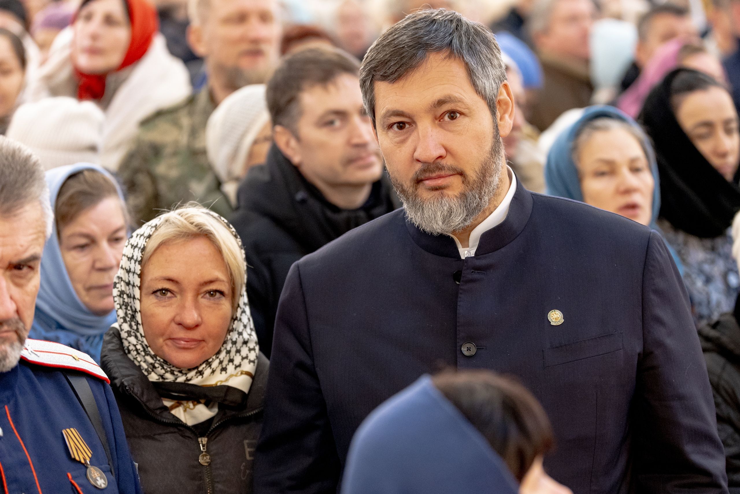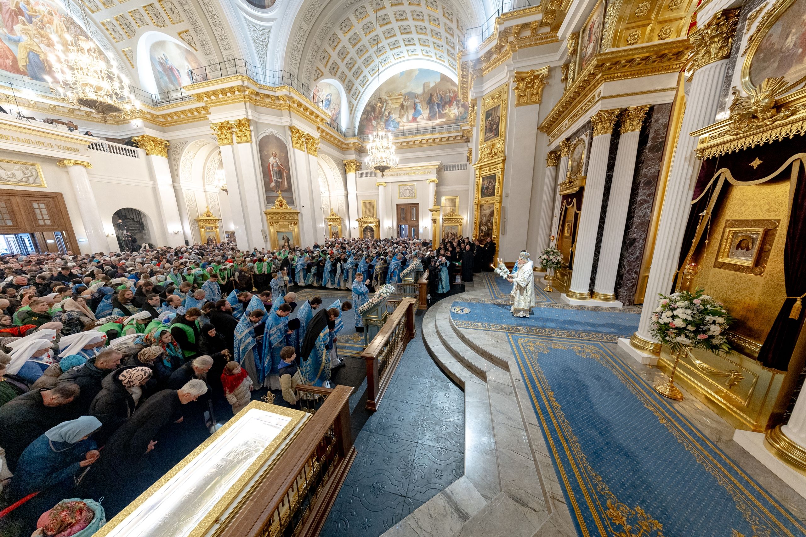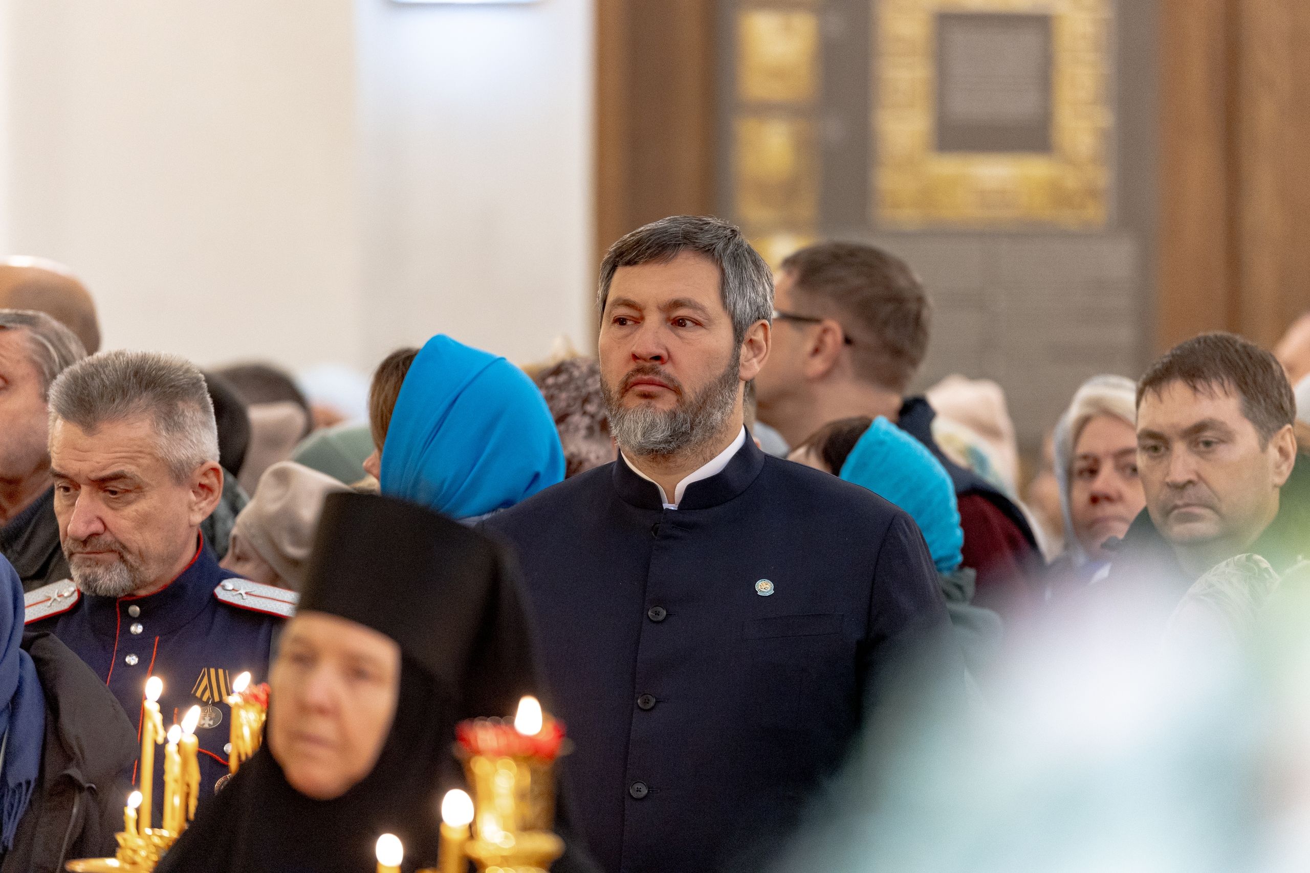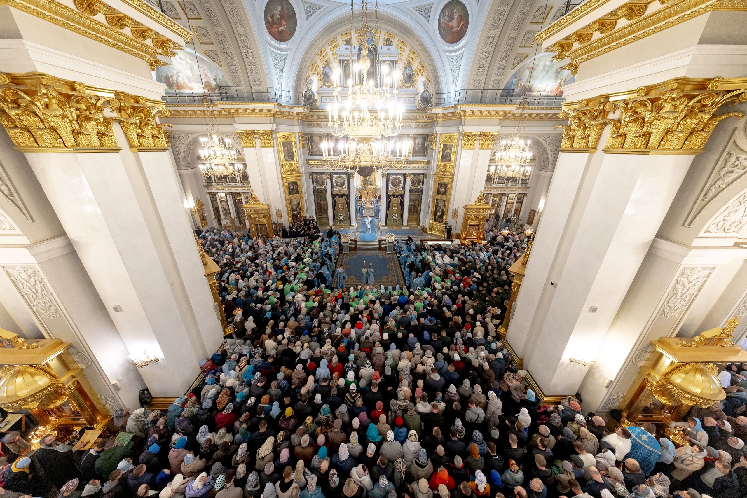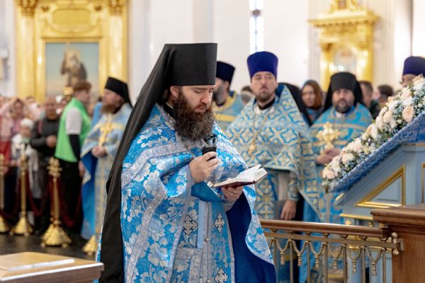 На мирной и сугубой ектениях были вознесены молитвы о Российском воинстве и о мире. Часть молитвословий возносилась на арабском и английском языках. По запричастном стихе проповедь произнёс благочинный I церковного округа города Казани протоиерей Владимир Самойленко.