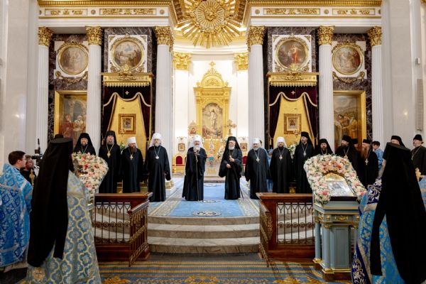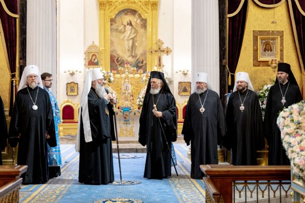 Митрополит Кирилл тепло поприветствовал и поблагодарил за молитвы архипастырей и священнослужителей, прибывших в Казань для участия в церковных торжествах:
