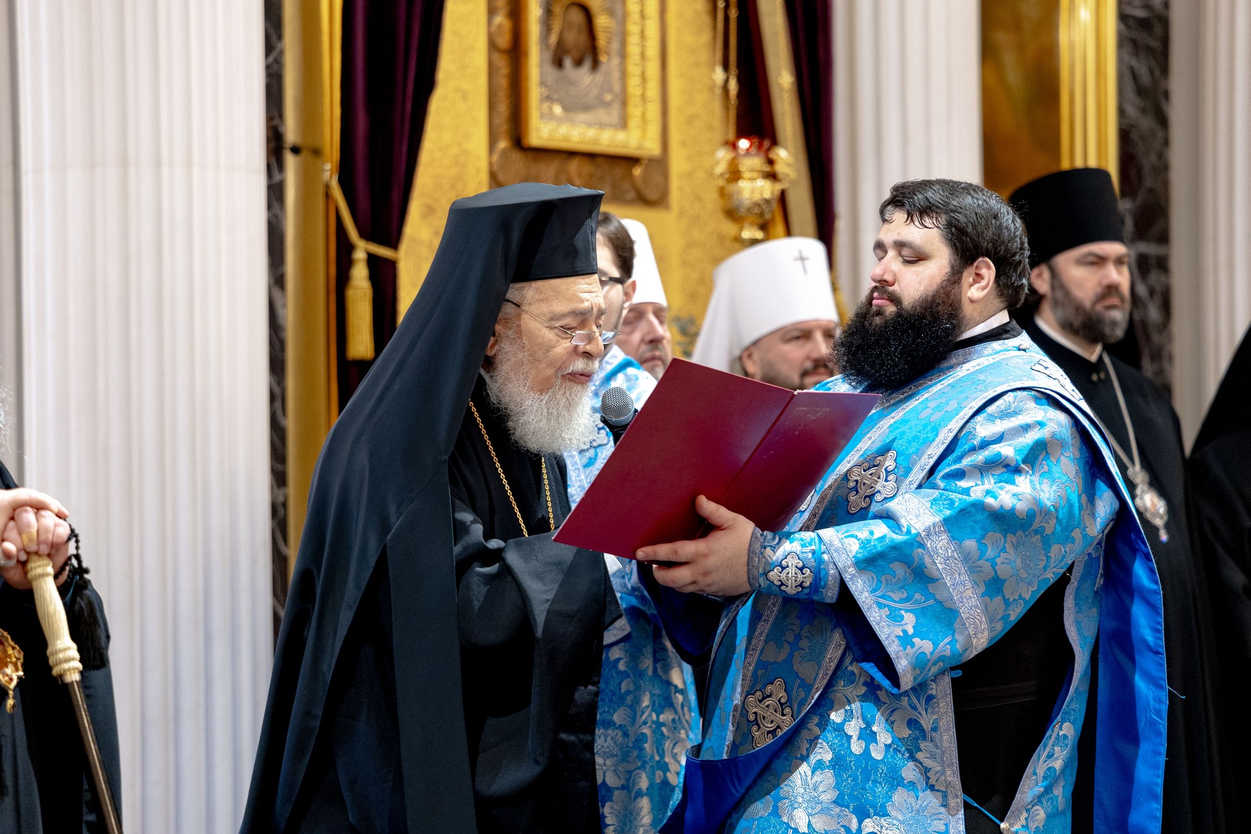 Сегодня мы, представители Поместных Православных Церквей: Антиохийской, Болгарской, Чешской и Американской, благодаря митрополиту Кириллу свидетельствуем здесь о нашем единстве в духе мира и любви. В этот прекрасный праздник мы рады передать вам, дорогой владыка, что предстоятели наших Церквей считают вас одним из выдающихся архиереев Русской Церкви. А у нас на Востоке высоко ценят Вас за Ваш вклад в дело укрепления взаимопонимания между людьми разных исповеданий.