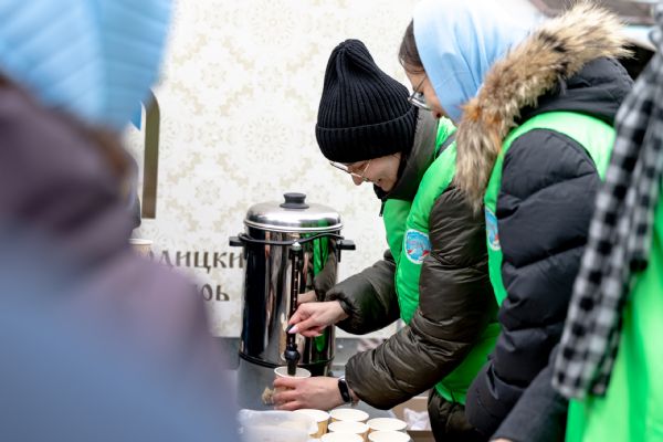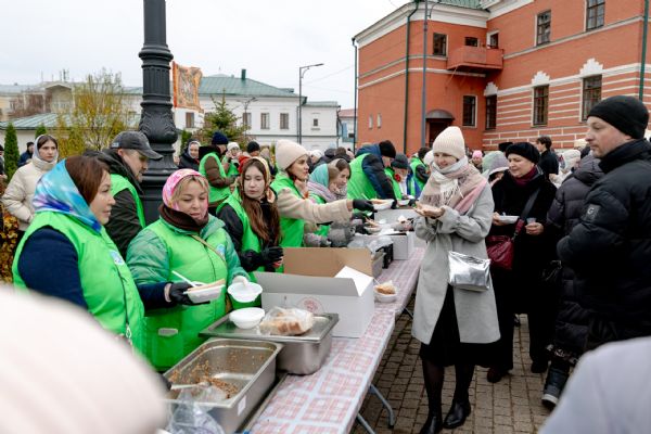 На территории Богородицкой обители была организована трапеза для прихожан и паломников.